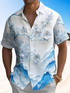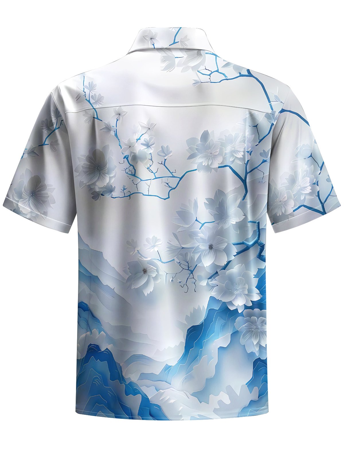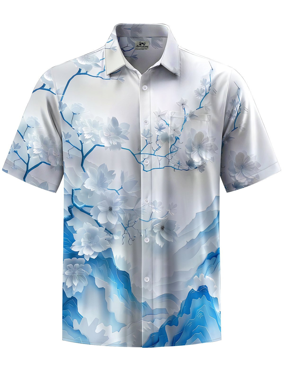 Alohadaddy® Hawaiian Flower Embossed Art Print Chest Pocket Men's Short Sleeve Shirt Big & Tall