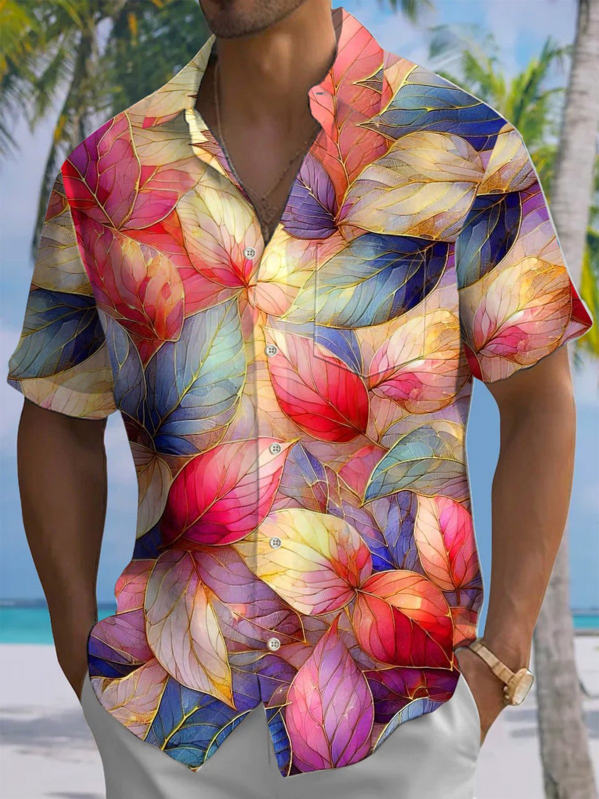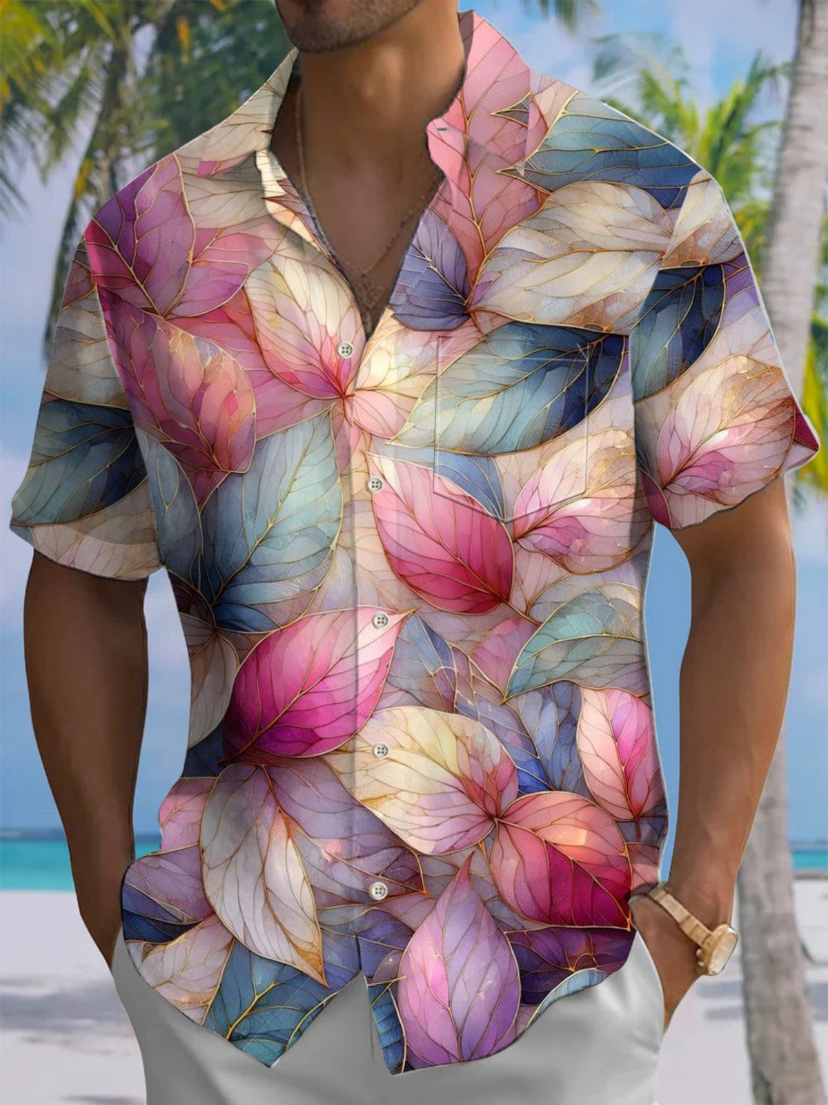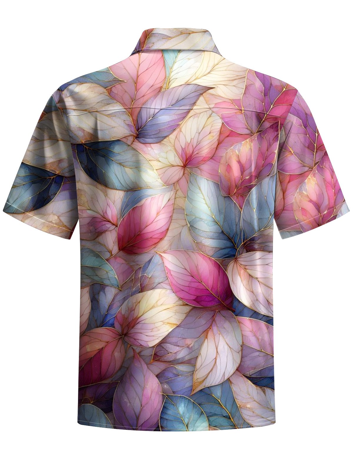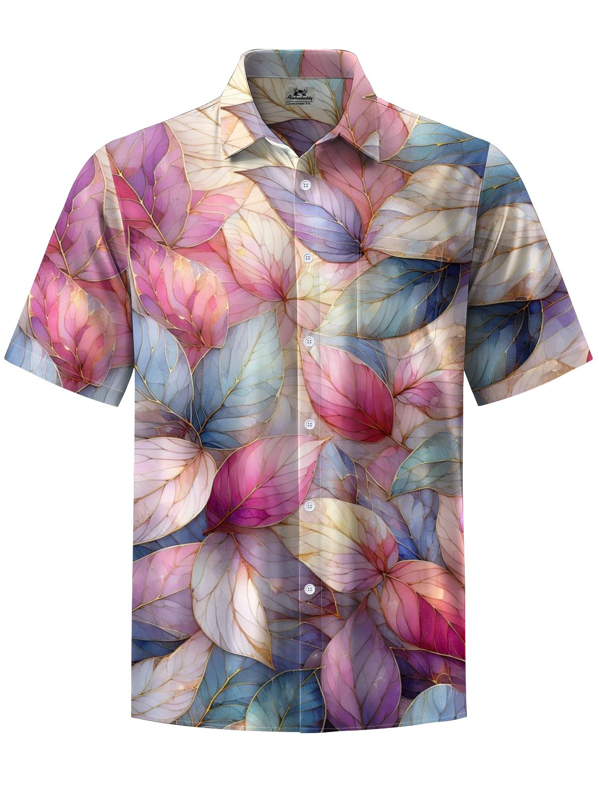 Alohadaddy® Hawaiian Leaves Art Print Chest Pocket Mens Short Sleeve Shirt Big & Tall