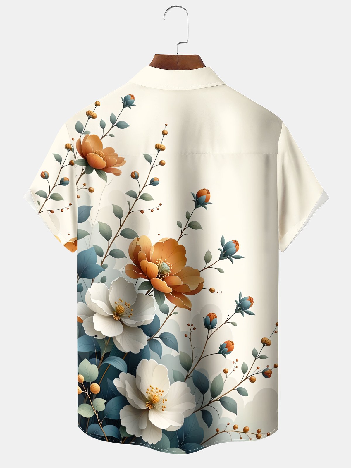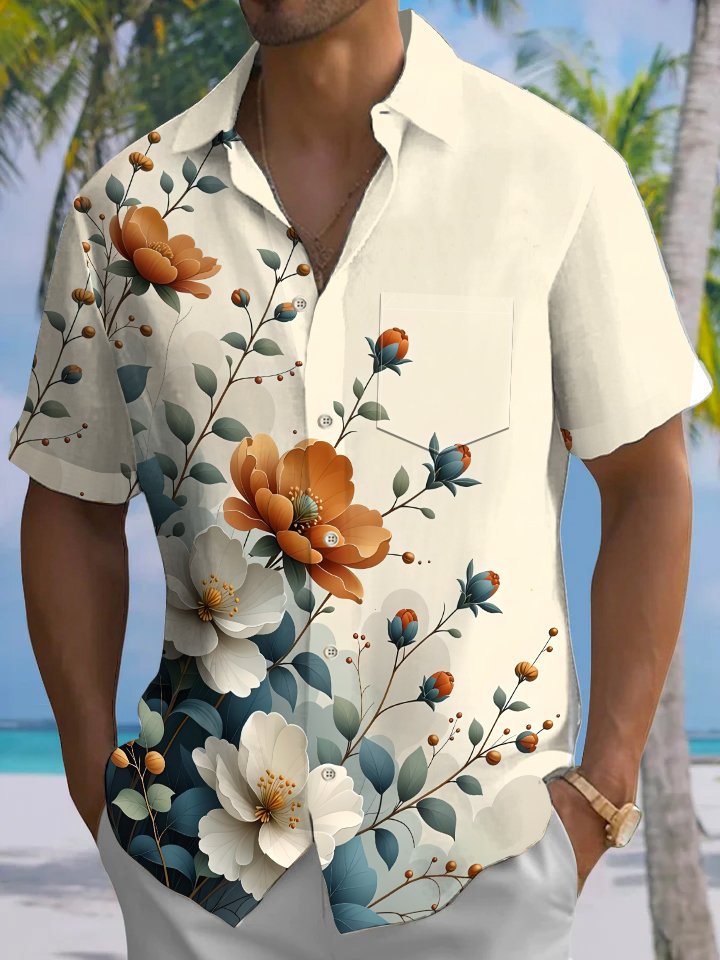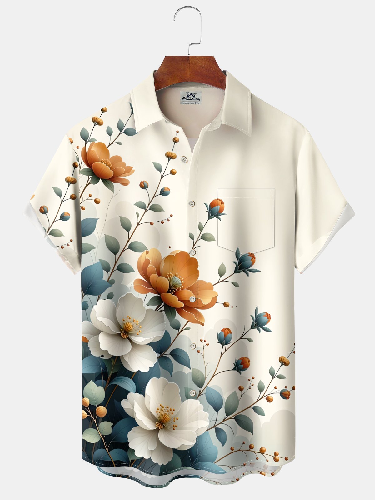 Alohadaddy Casual Collection Flowers Print Art Buttons Cardigan Pockets Fresh Stretch Polyester Short Sleeve Shirt