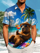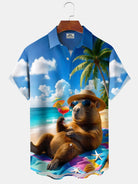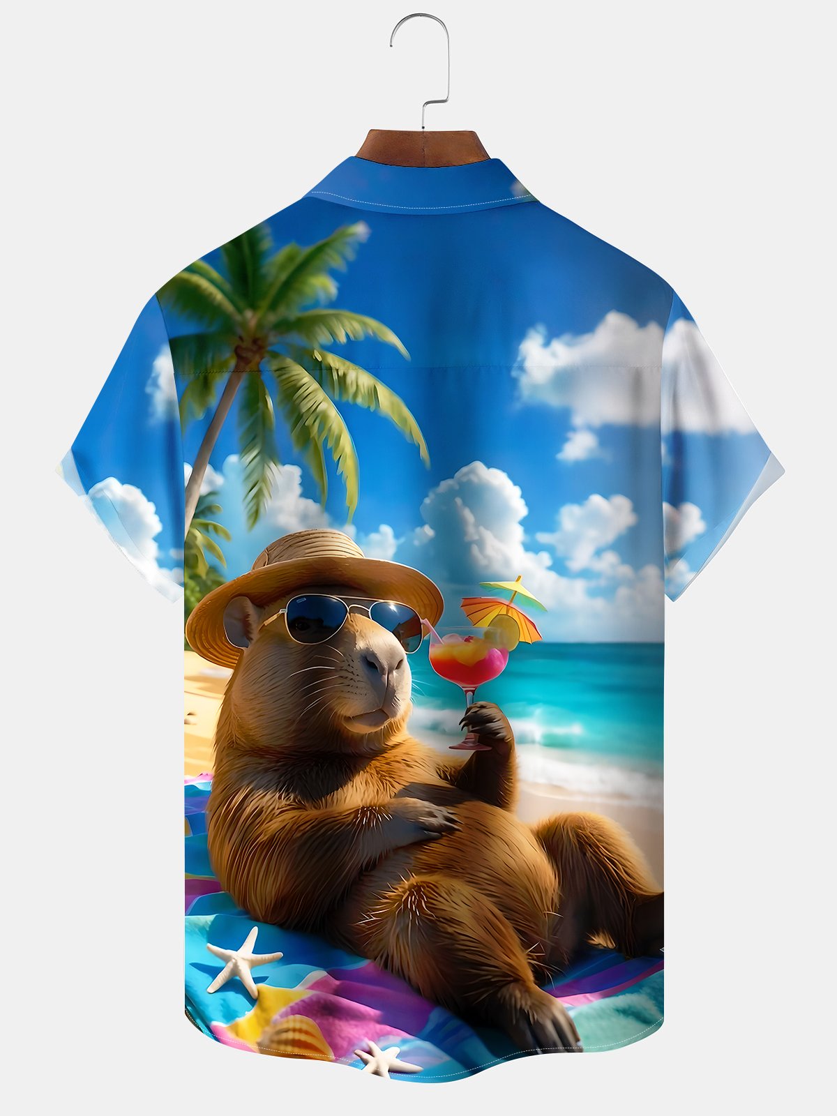 Alohadaddy Casual Hawaii Animals Beach Vacation Print Art Button Cardigan Pockets Stretch Large Size Polyester Short Sleeve Shirt