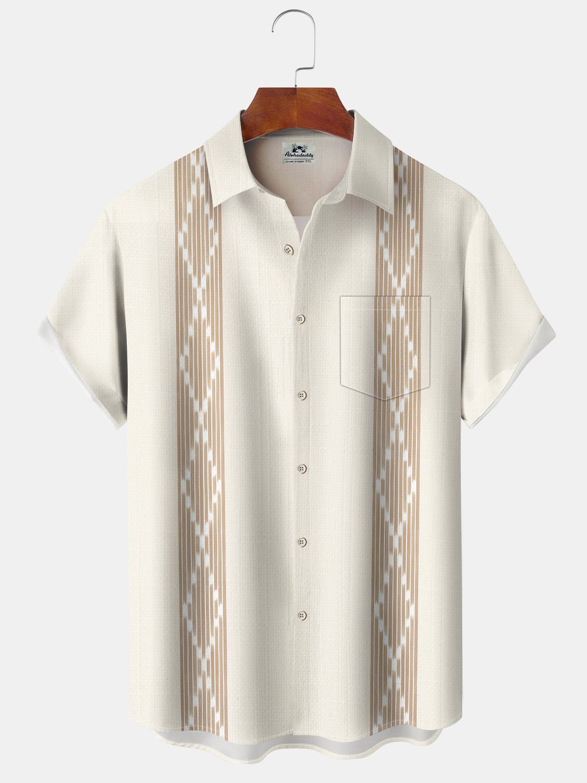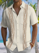 Alohadaddy Casual Stripes Diamond Apricot Contrast Print Art Polyester Stretch Buttons Cardigan Pockets Oversized Long Short Sleeve Shirt