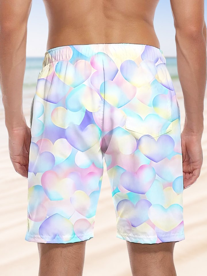 Alohadaddy Gradient Heart Drawstring Pocket Casual Beach Shorts