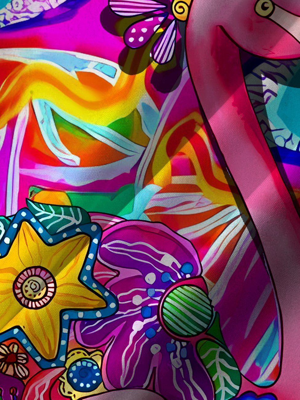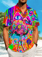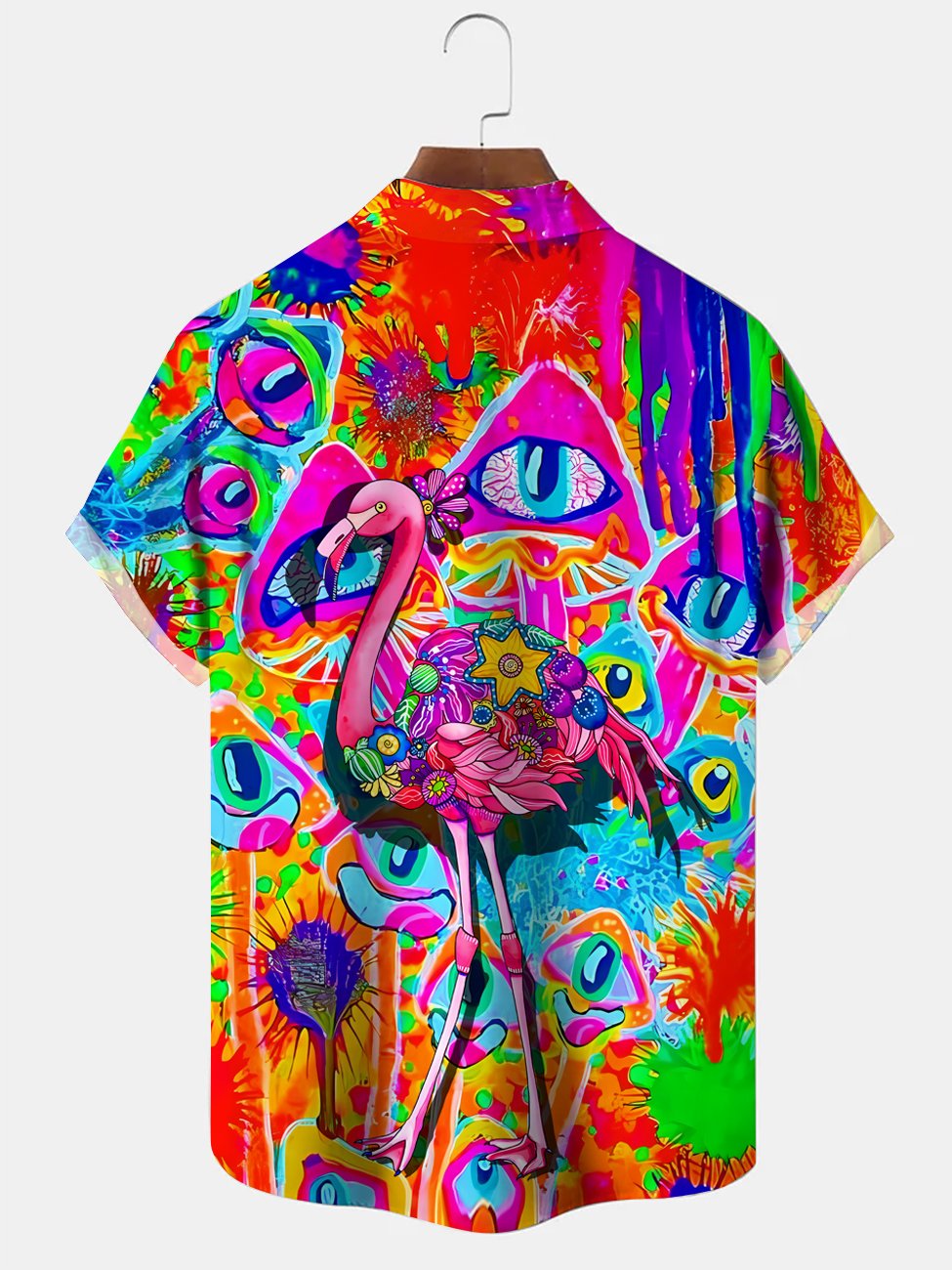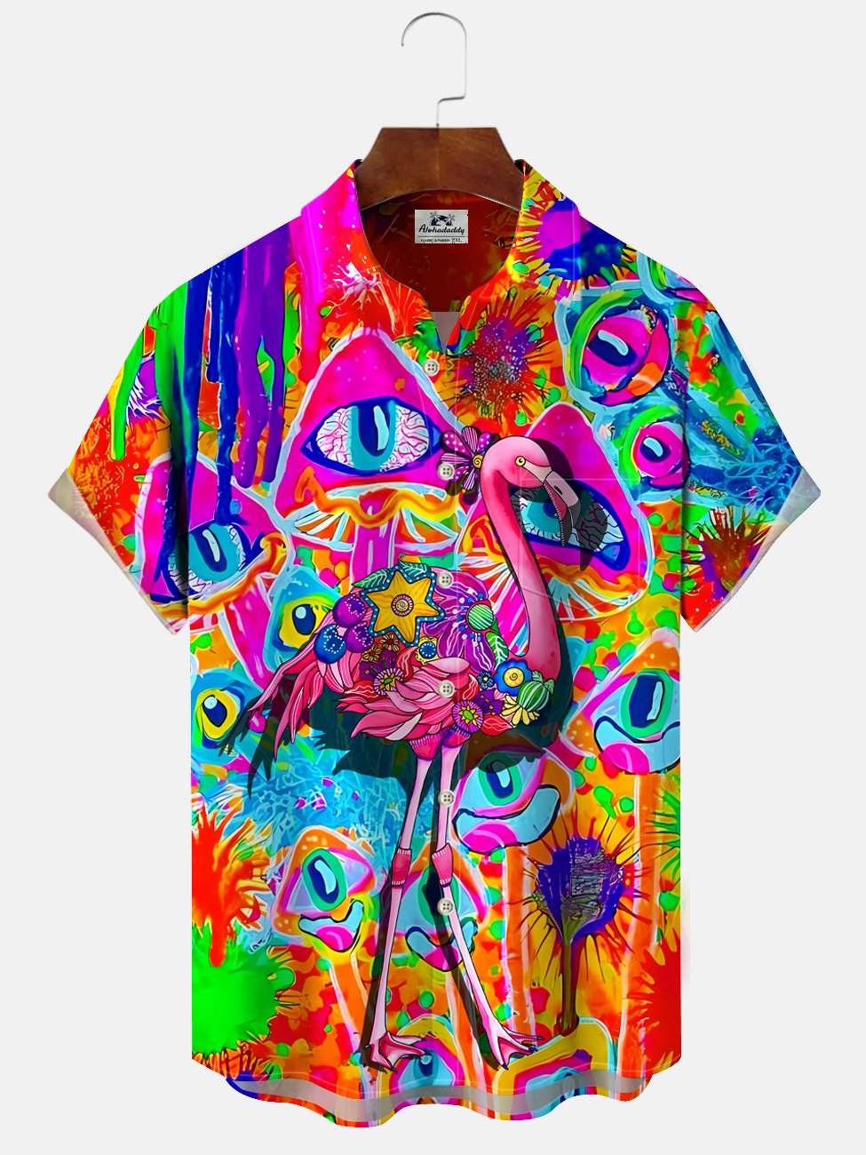 Alohadaddy Abstract Art Flamingo Button Pocket Casual Short Sleeve Shirt