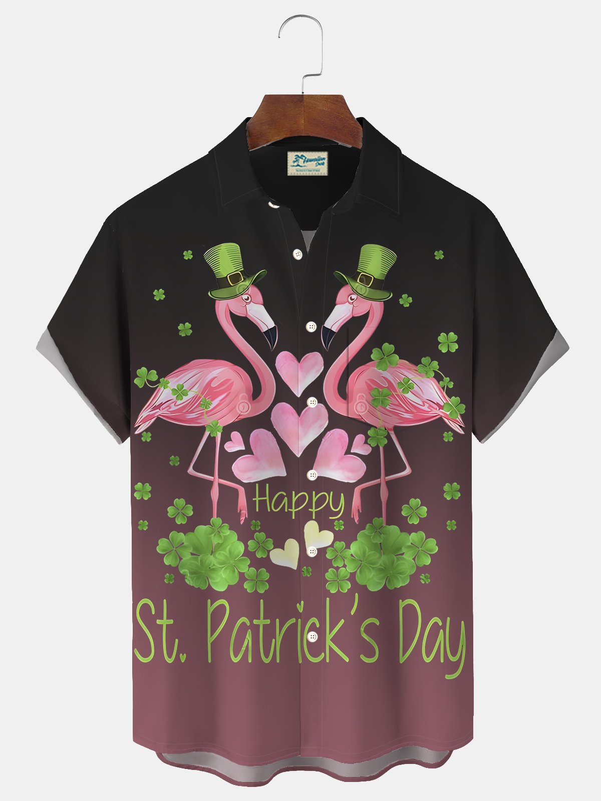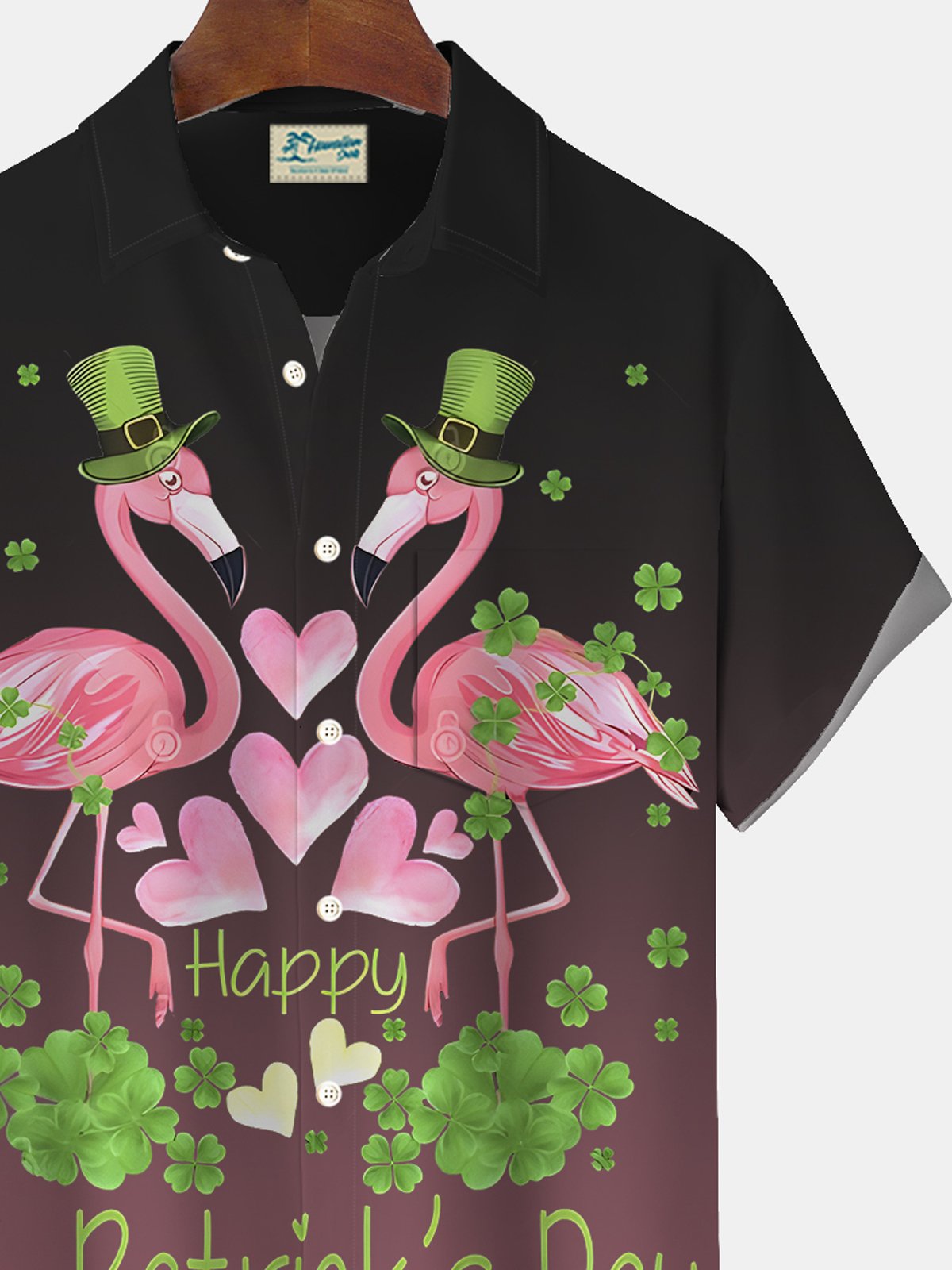 Alohadaddy Holiday St. Patrick's Day Flamingo Print Men's Button Pocket Shirt