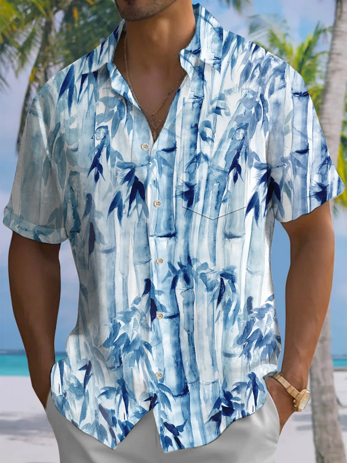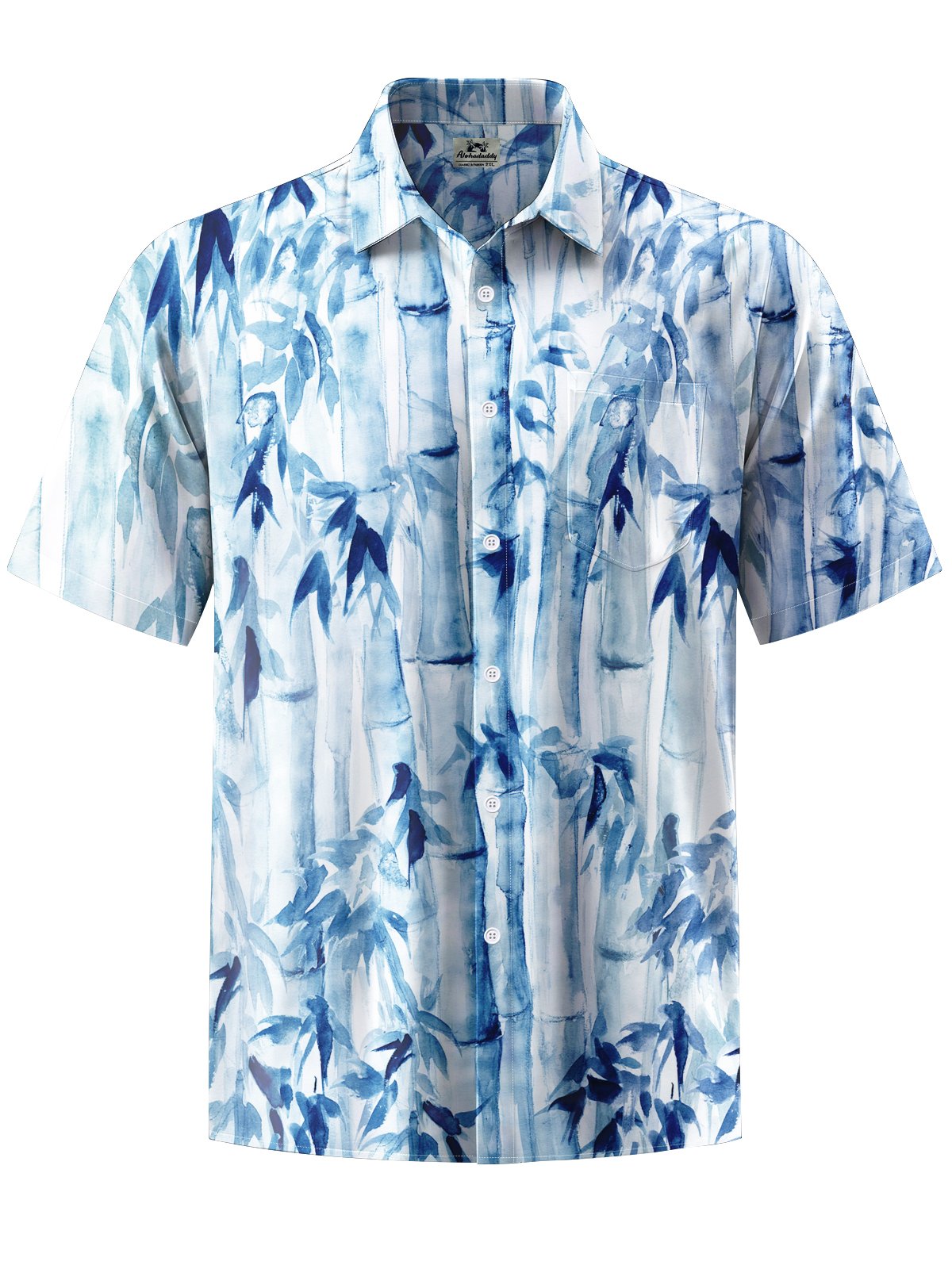 Alohadaddy® Casual Ink Painting Bamboo Art Print Stretch Men's Short Sleeve Shirt Big & Tall