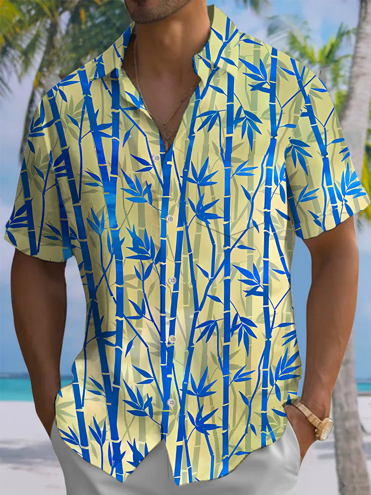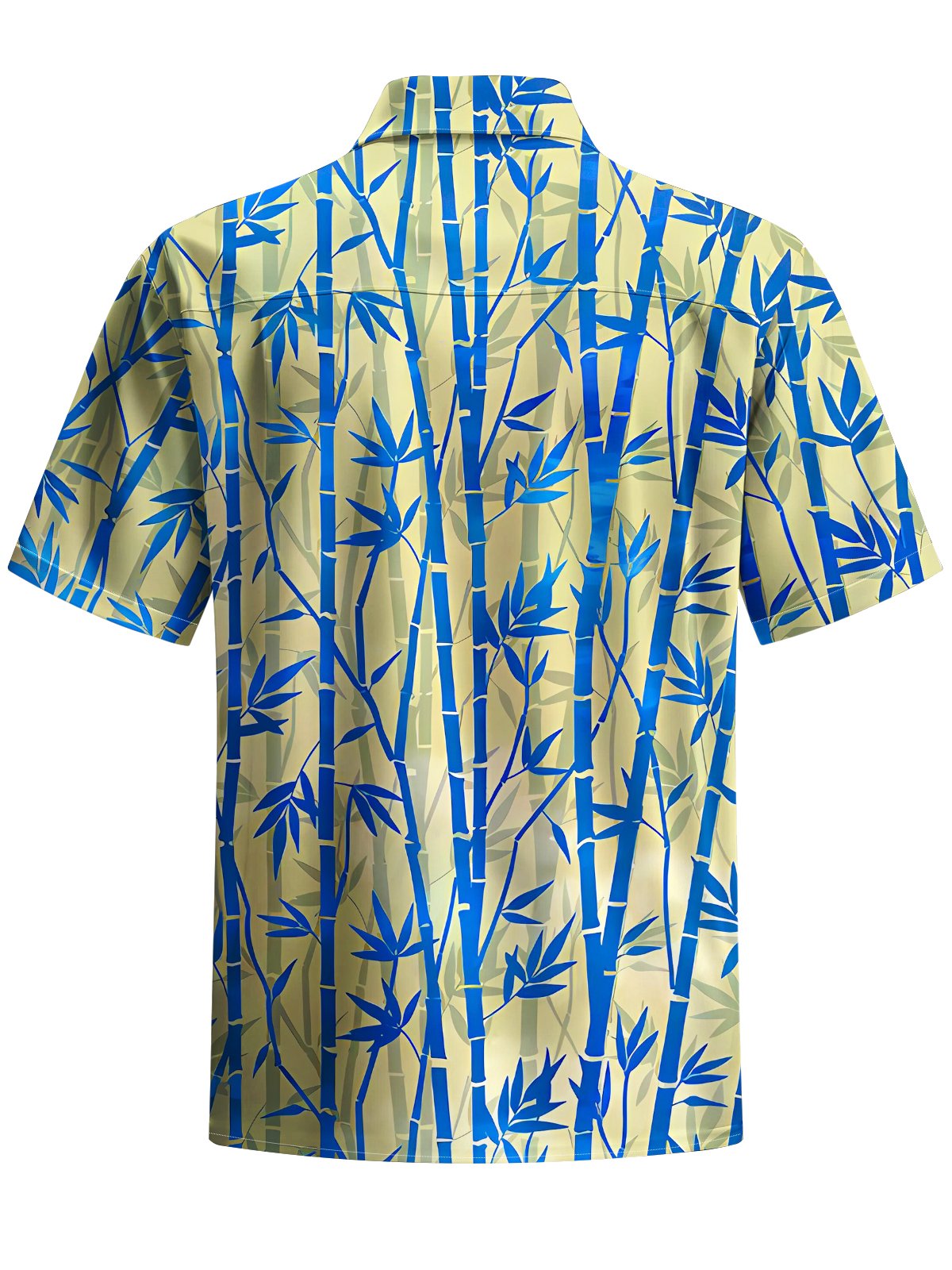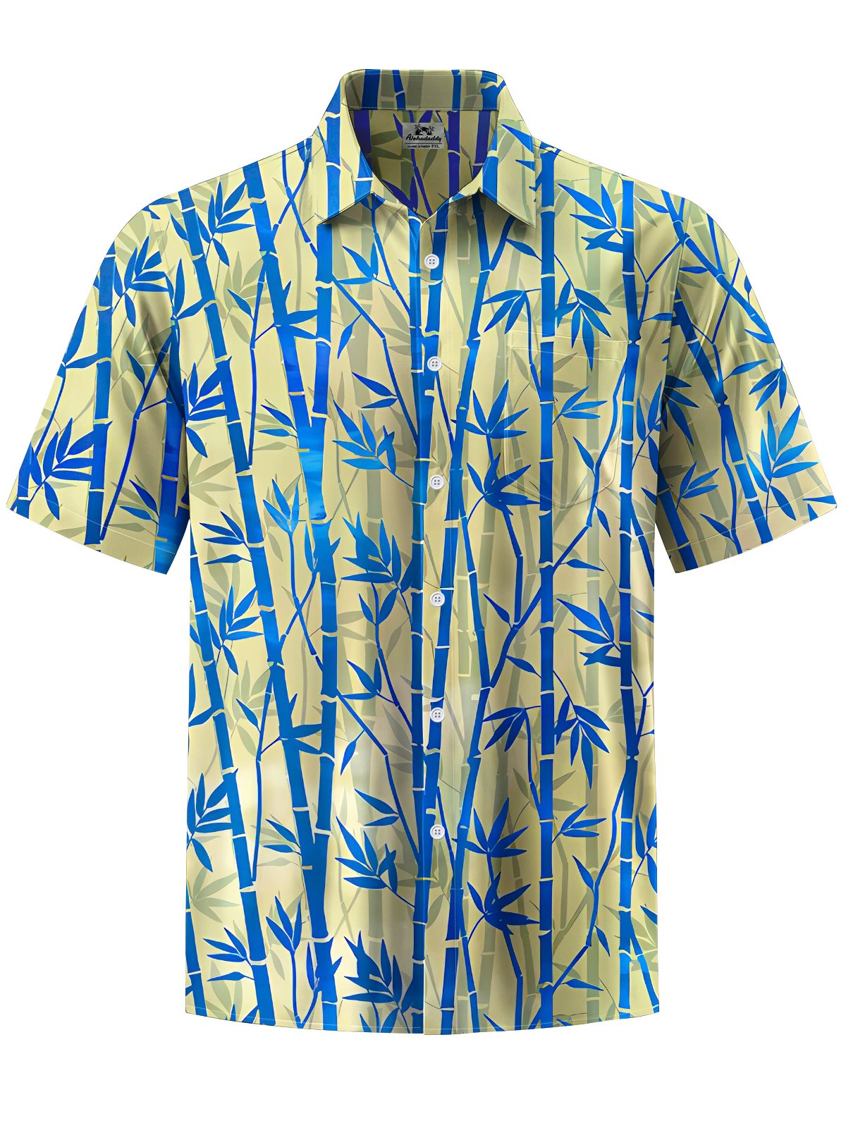 Alohadaddy® Hawaiian Bamboo Print Button Pocket Men's Short Sleeve Shirt Big & Tall