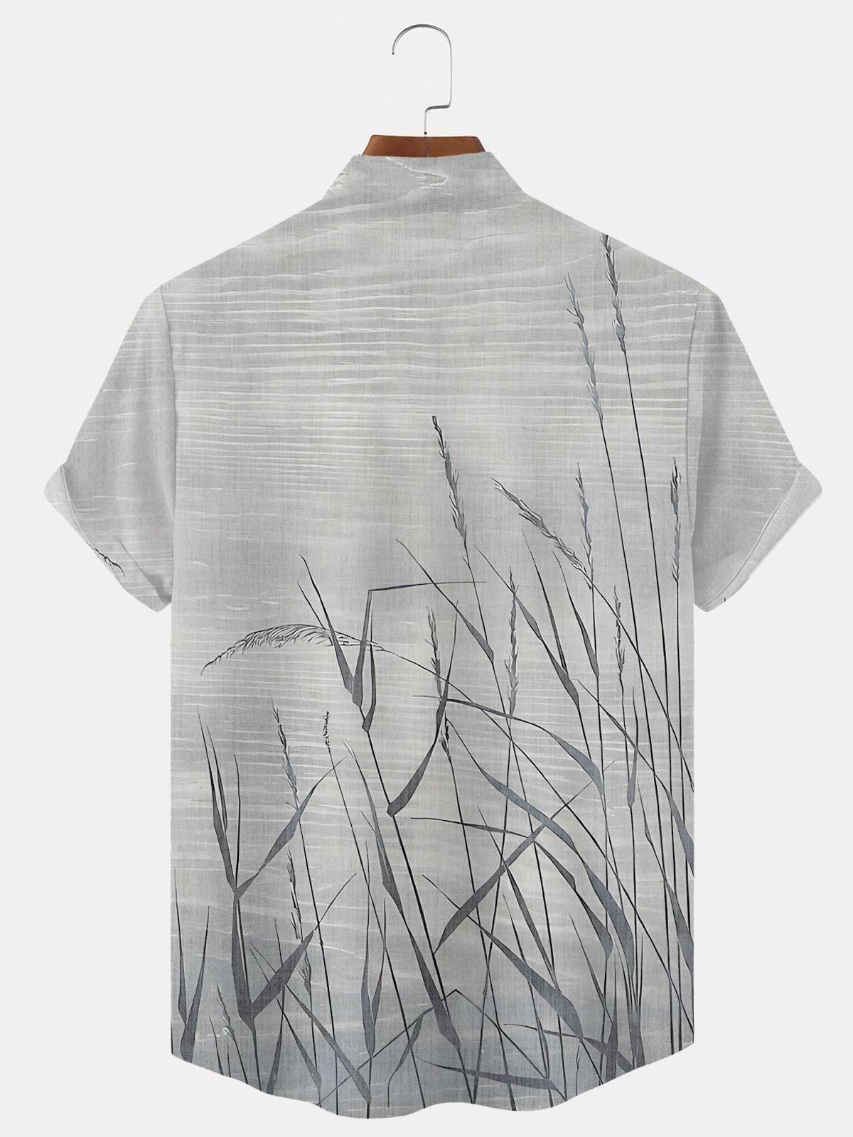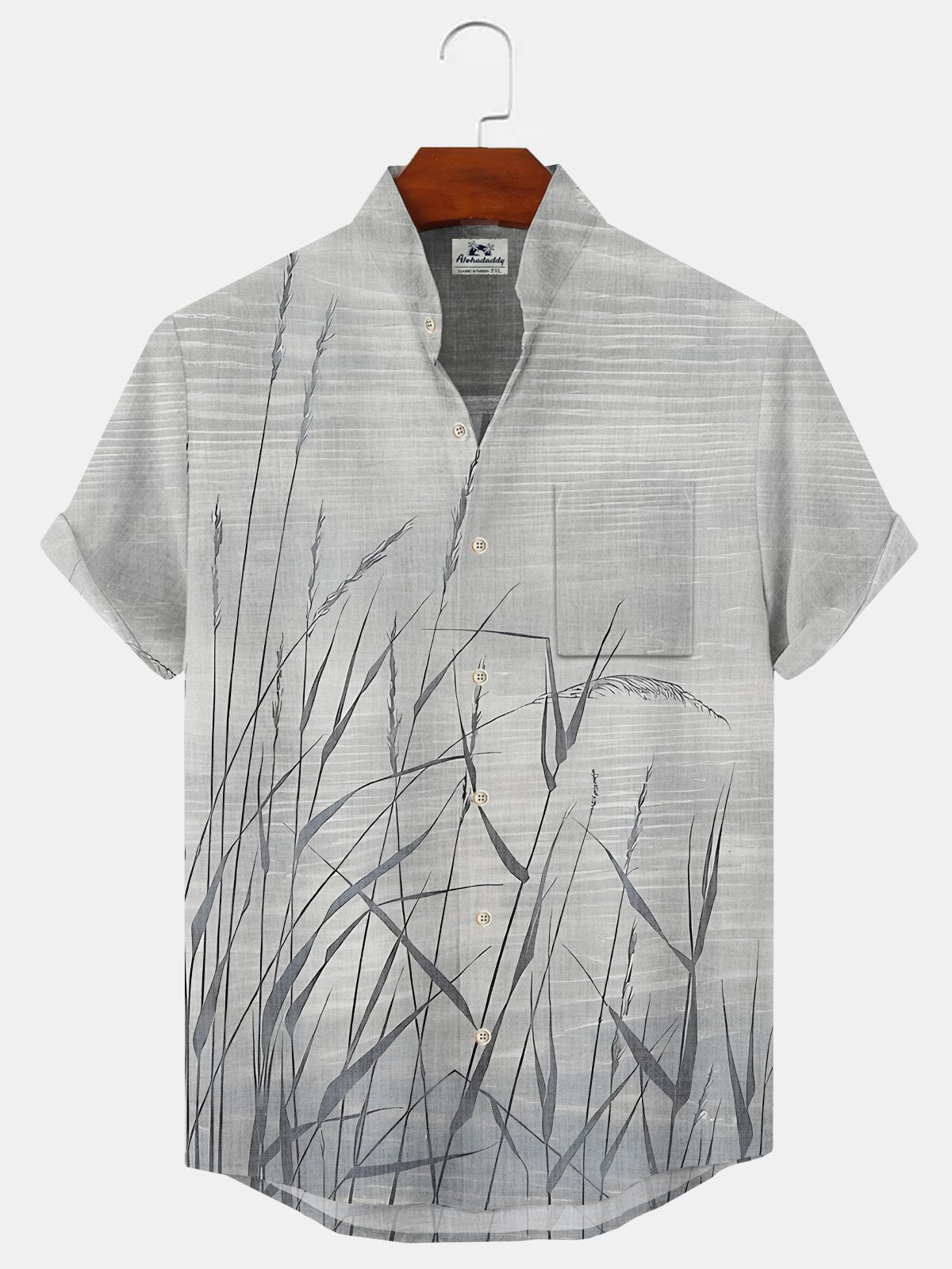 Alohadaddy Plant Button Pocket Casual Short Sleeve Stand Collar Shirt