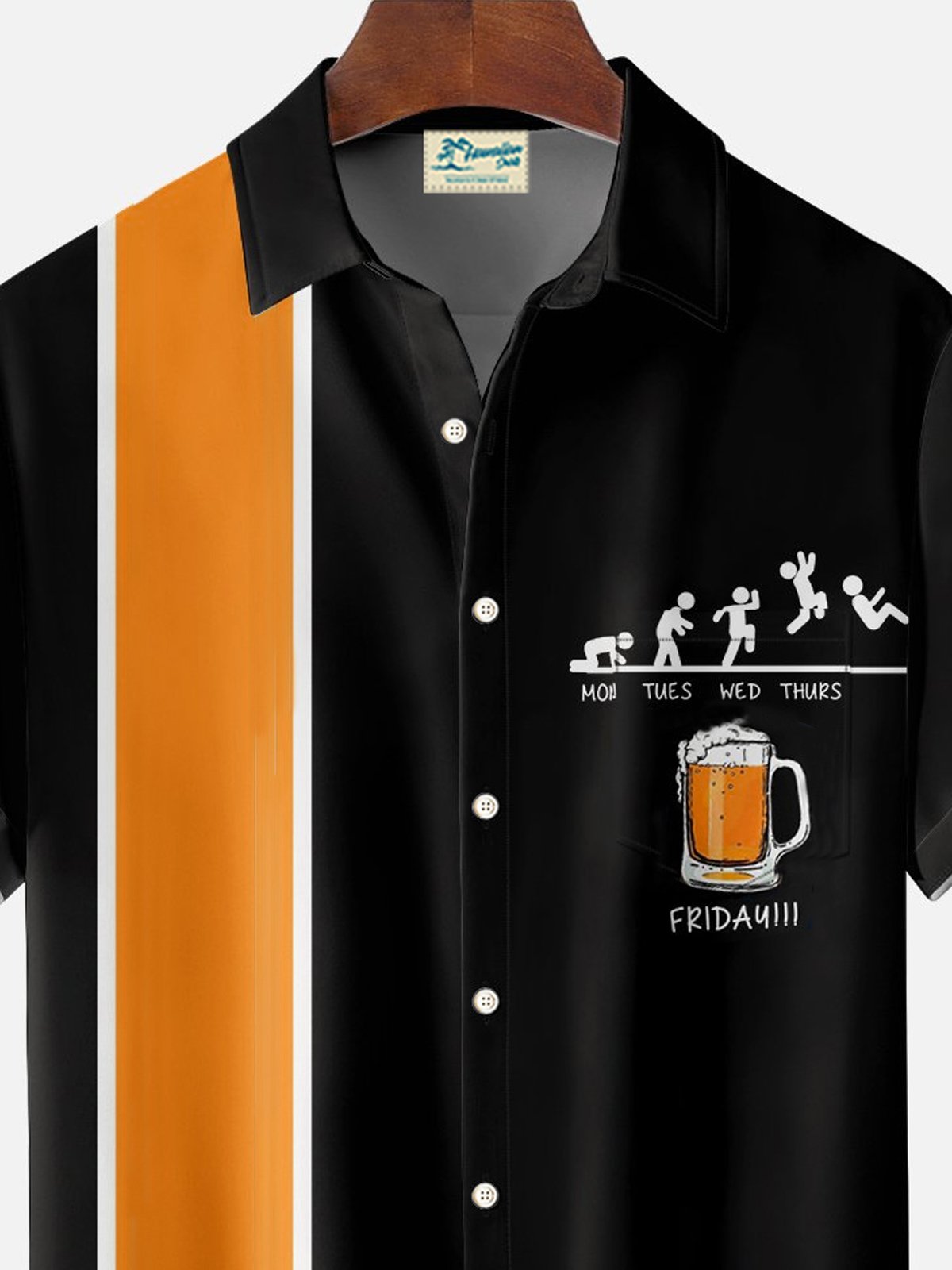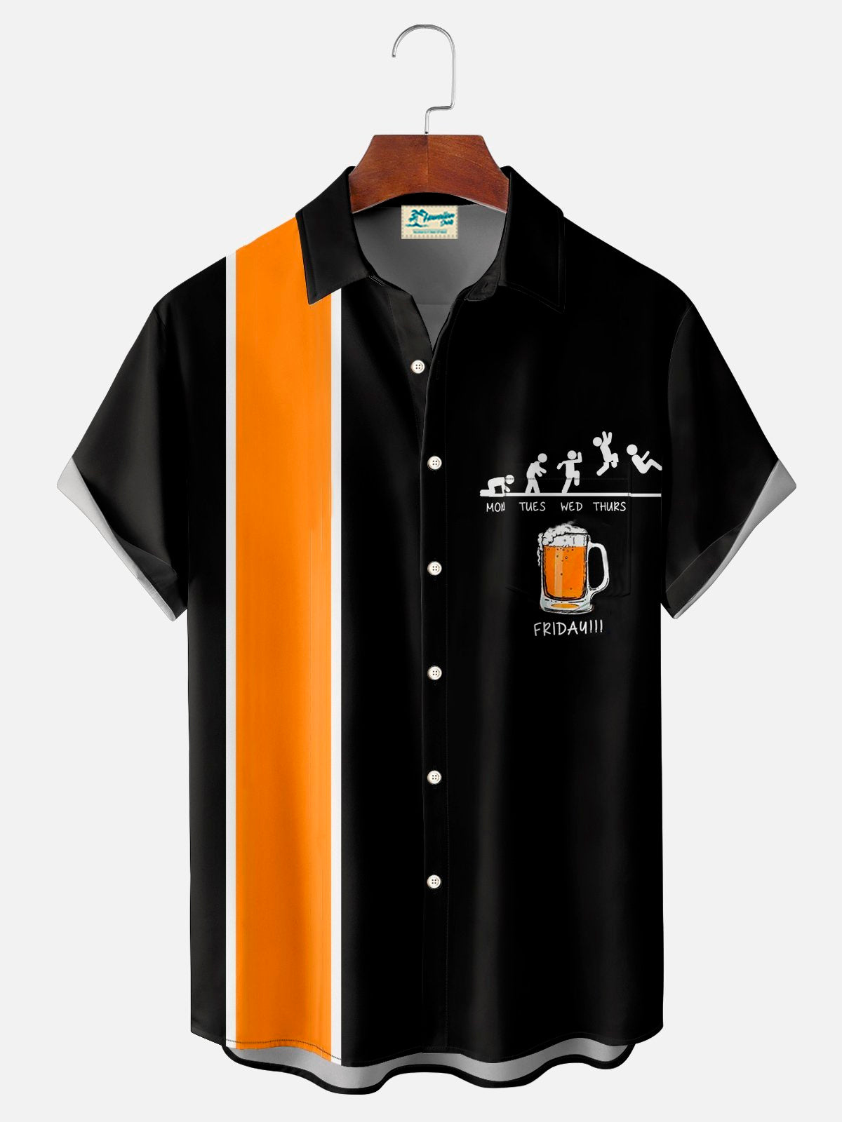 Alohadaddy Retro Bowling Fun Beer 3D Digital Printing Men's Button Pocket Short Sleeve Shirt Big & Tall