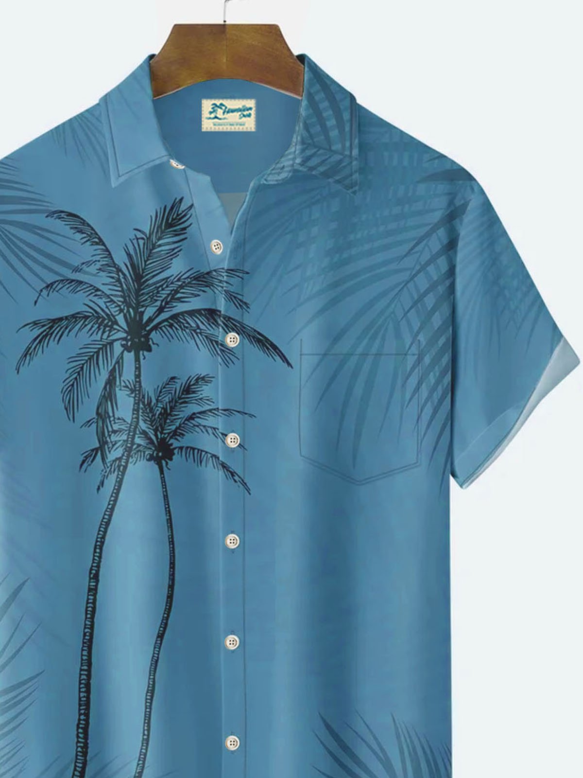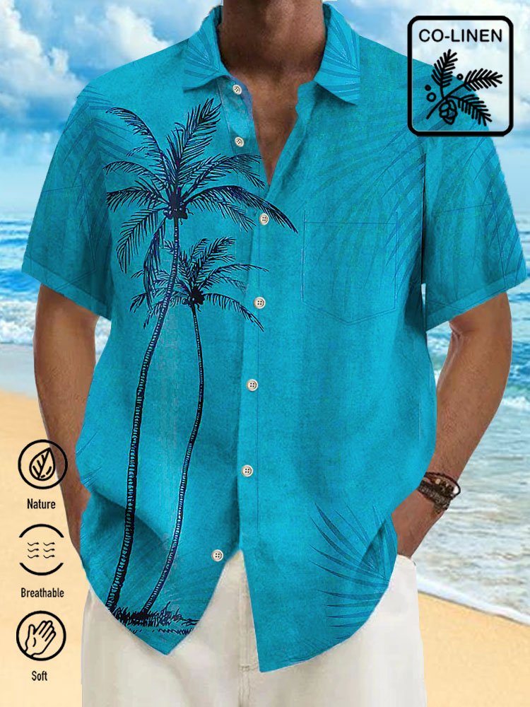 Alohadaddy Cotton Hawaiian Icy Blue Coconut Tree Men's Button Pocket Shirt