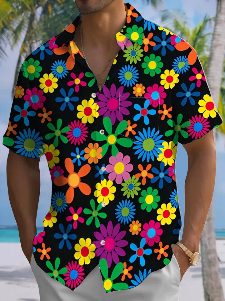 Alohadaddy® Casual Floral Art Print Chest Pocket Men's Short Sleeve Shirt Big & Tall