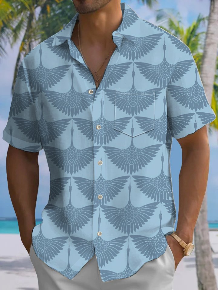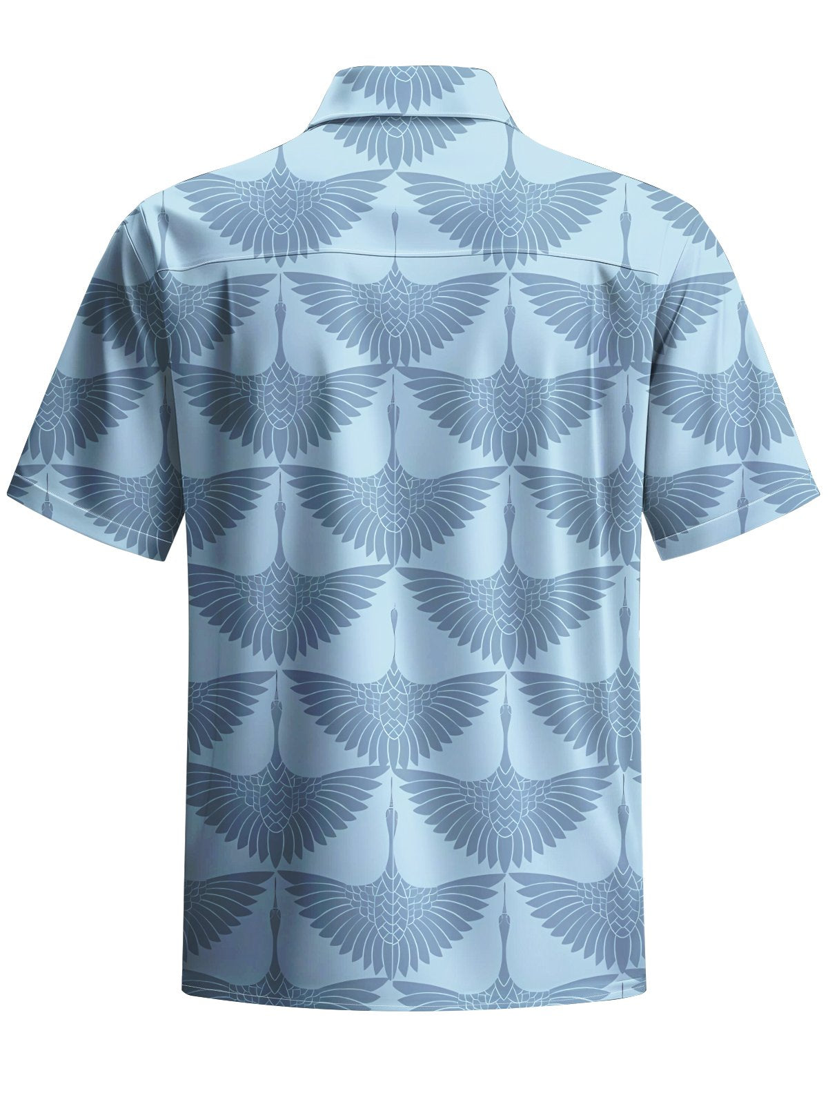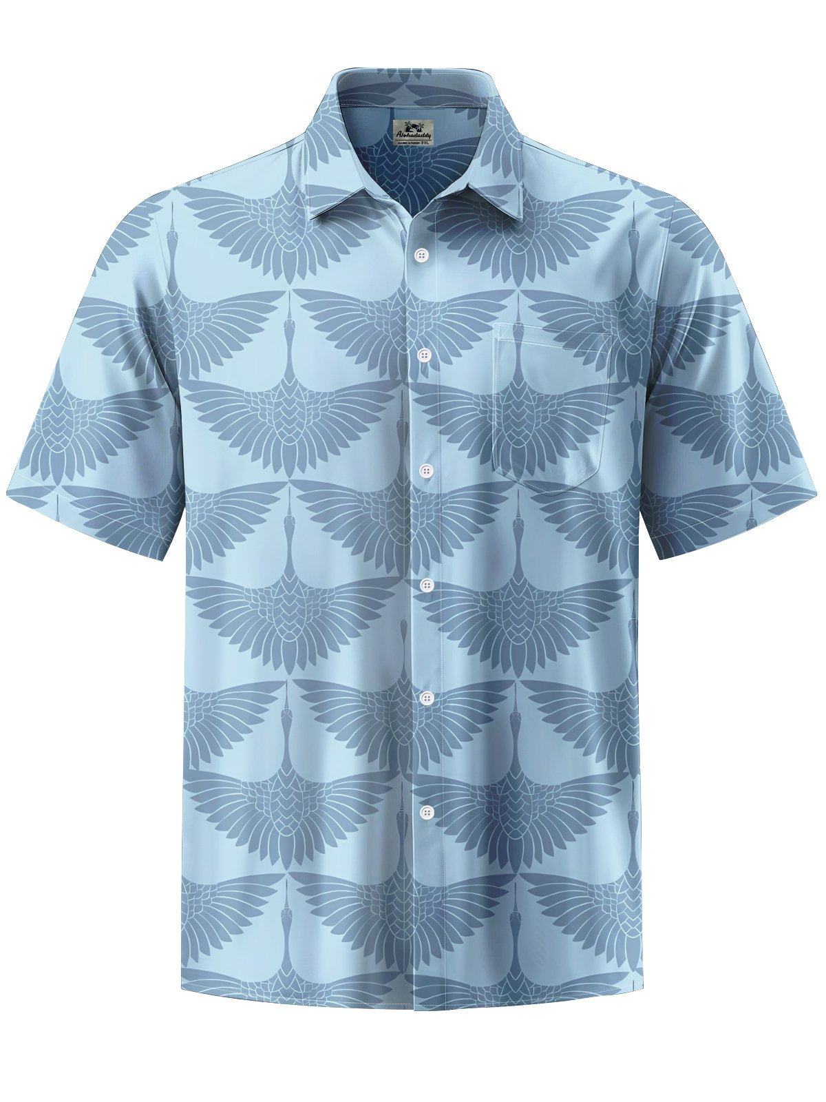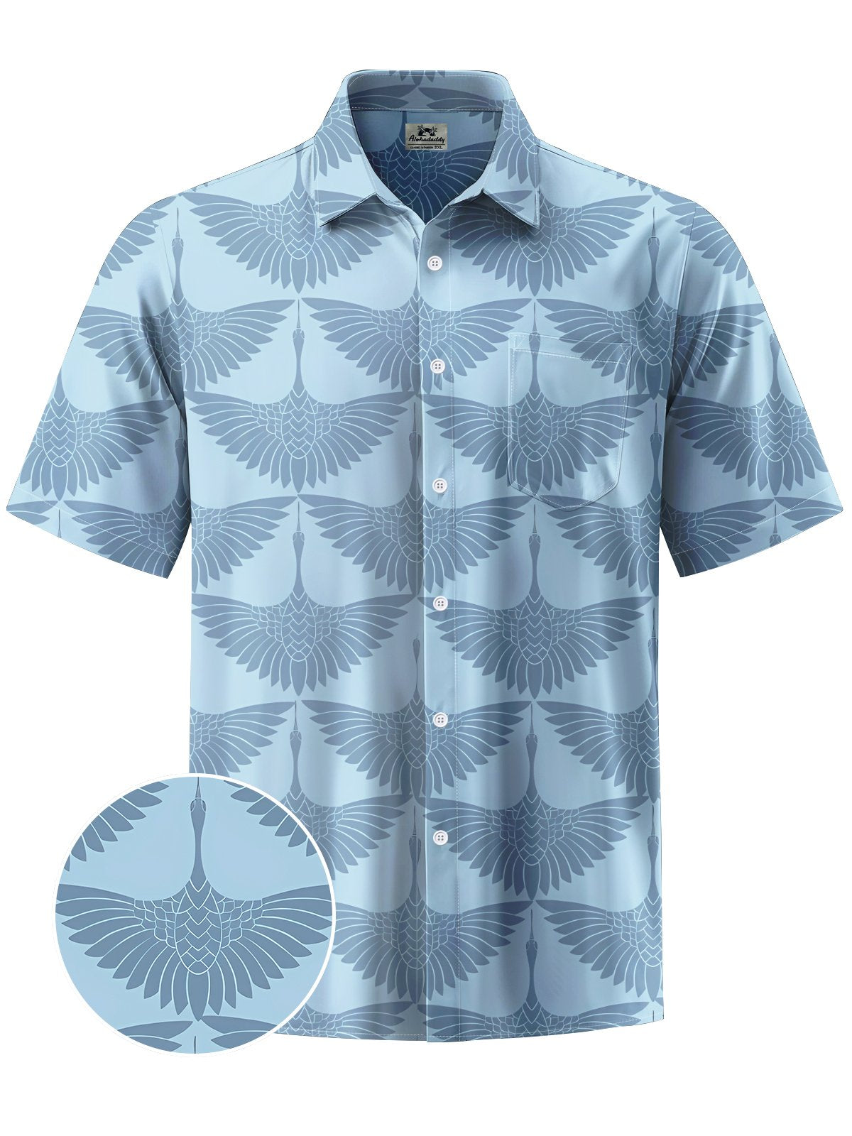 Alohadaddy® Casual Crane Art Print Chest Pocket Moisture Wicking Men's Short Sleeve Shirt Big & Tall