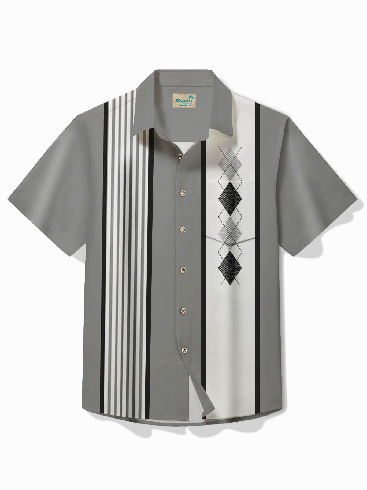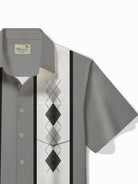 Alohadaddy Retro Bowling Stripe Geometric Print Men's Button Pocket Short Sleeve Shirt