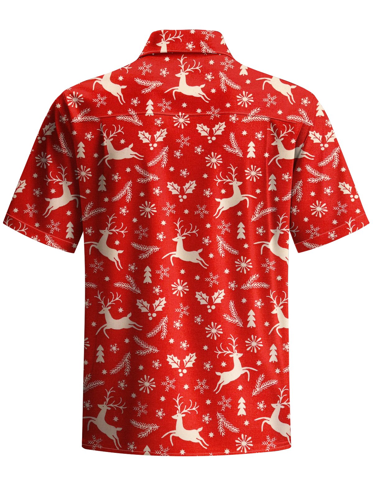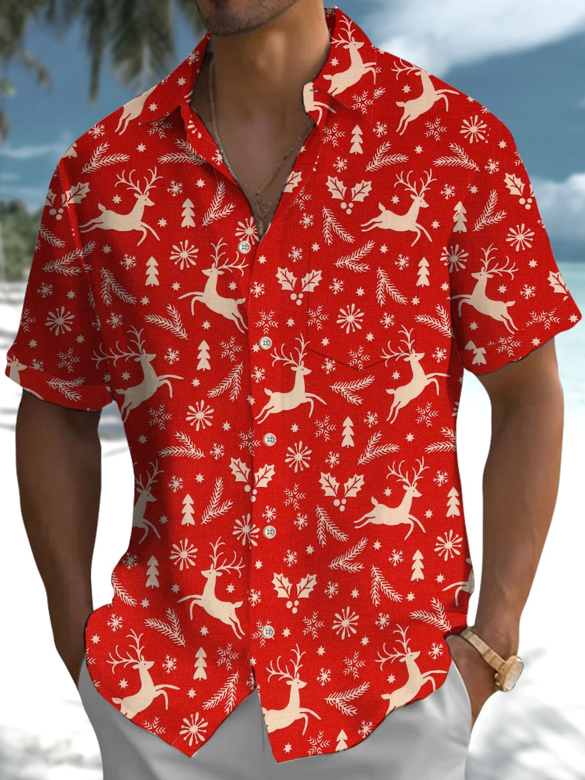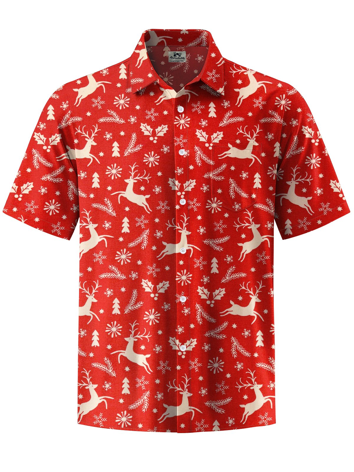 Alohadaddy® Christmas Elk Print Art Pocket Stretch Men's Short Sleeve Shirt Big & Tall