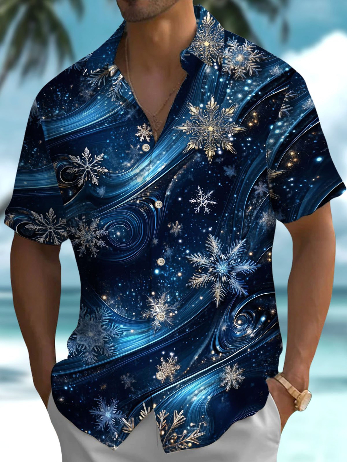 Alohadaddy® Christmas Snowflake Fir Print Pocket Stretch Men's Short Sleeve Shirt Big & Tall