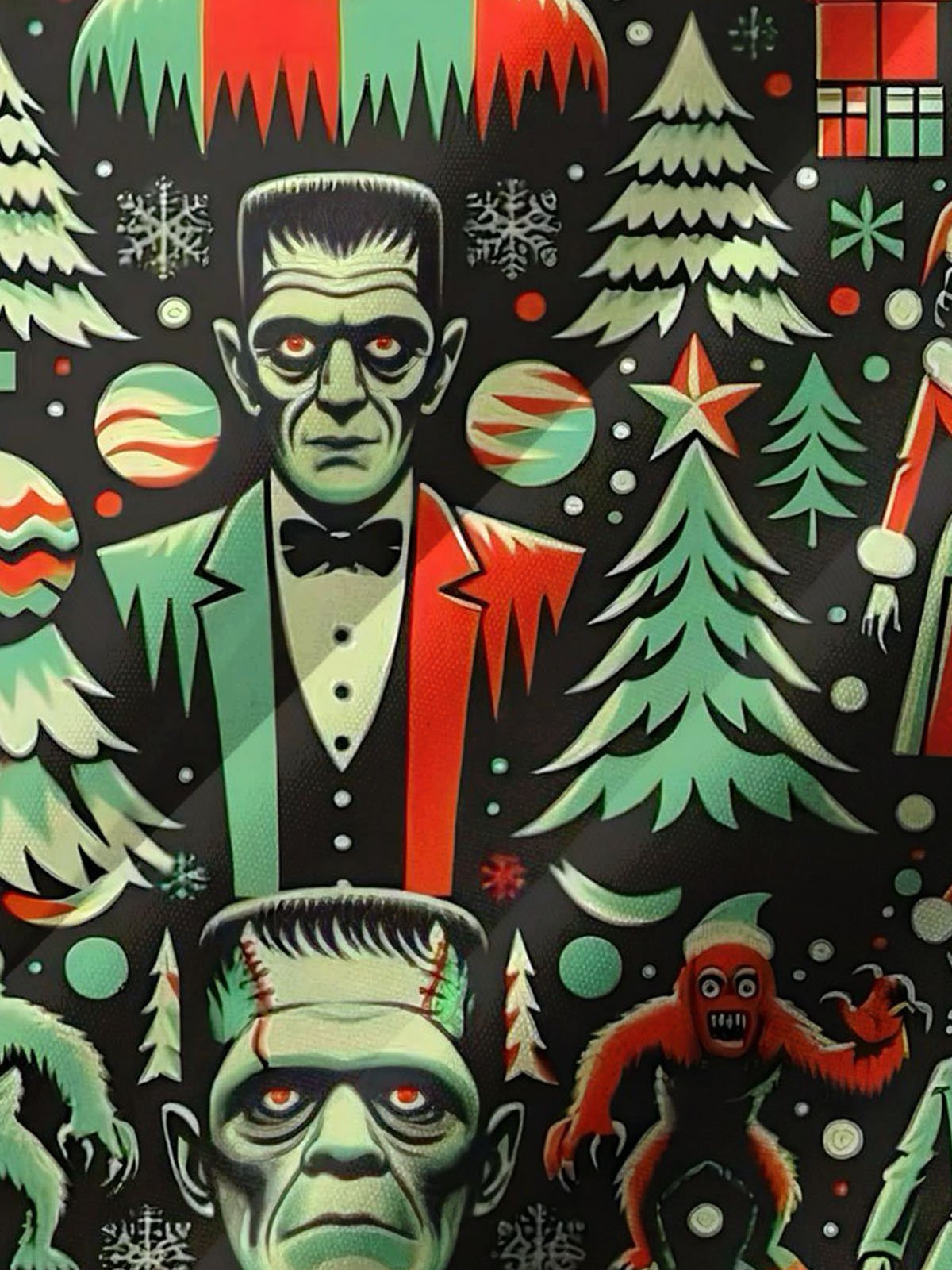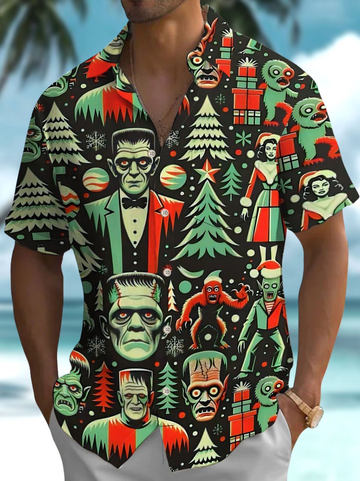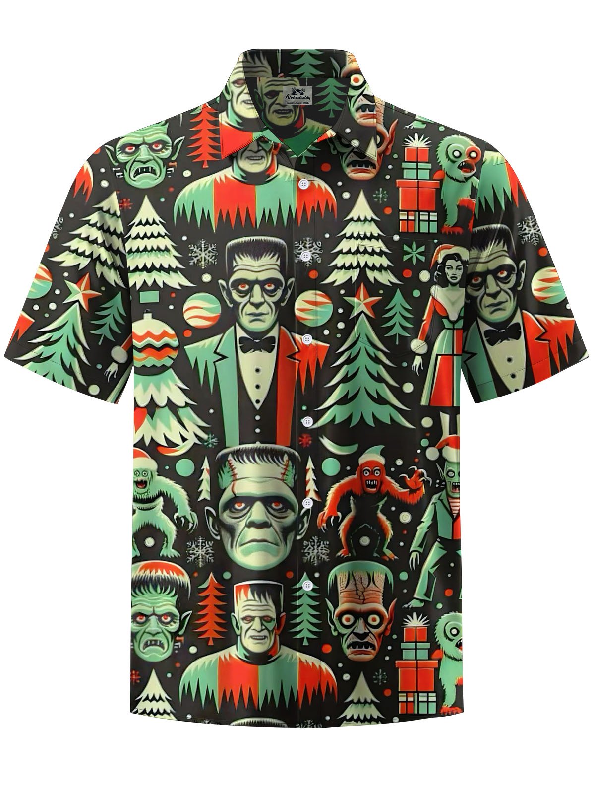 Alohadaddy® Holiday Christmas Art Print Pocket Stretch Men's Short Sleeve Shirt Big & Tall