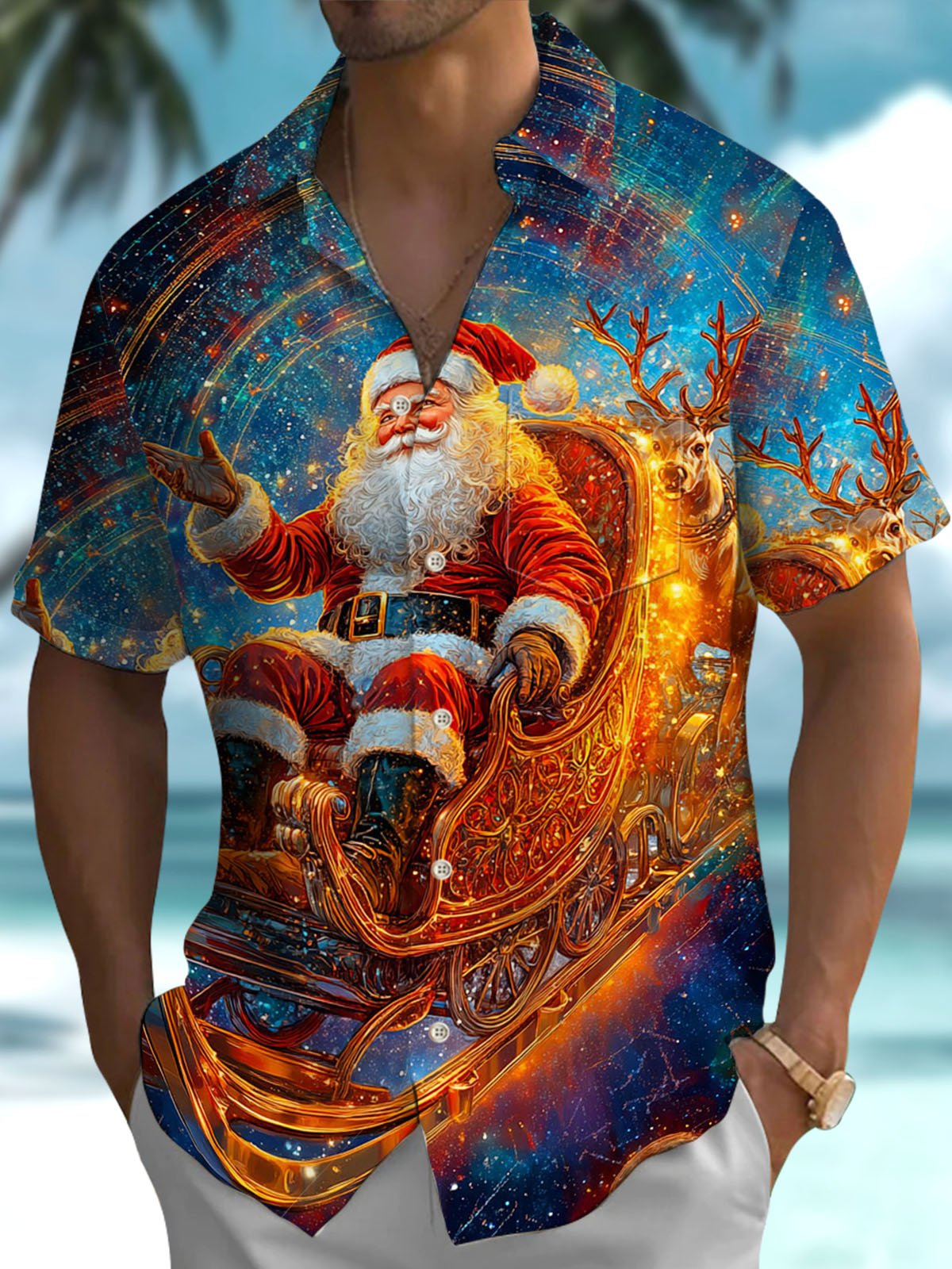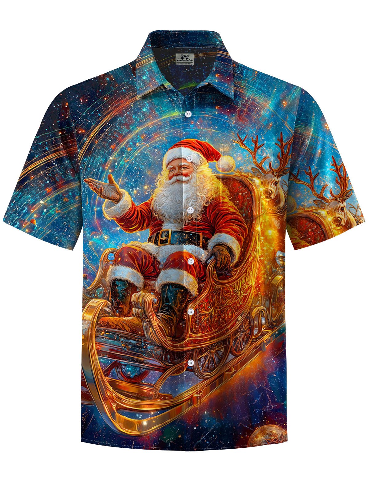 Alohadaddy® Santa Claus Print Art Pocket Stretch Men's Short Sleeve Shirt Big & Tall