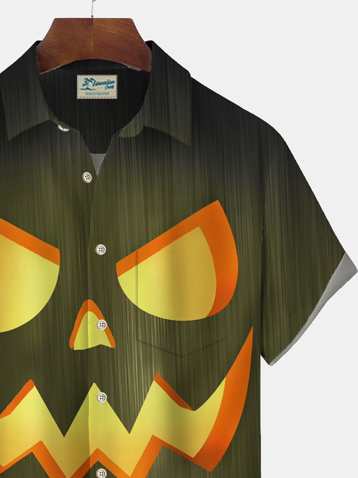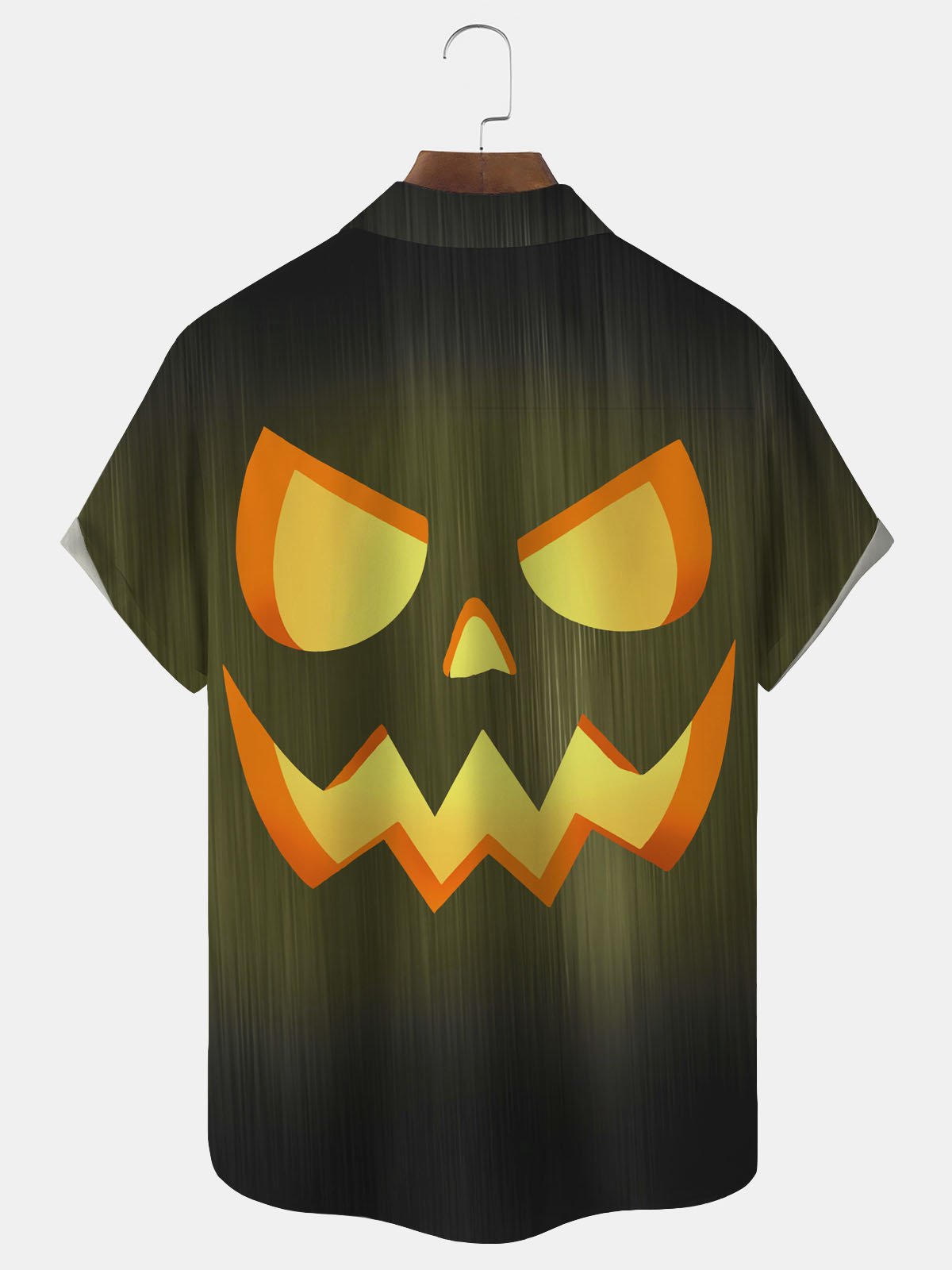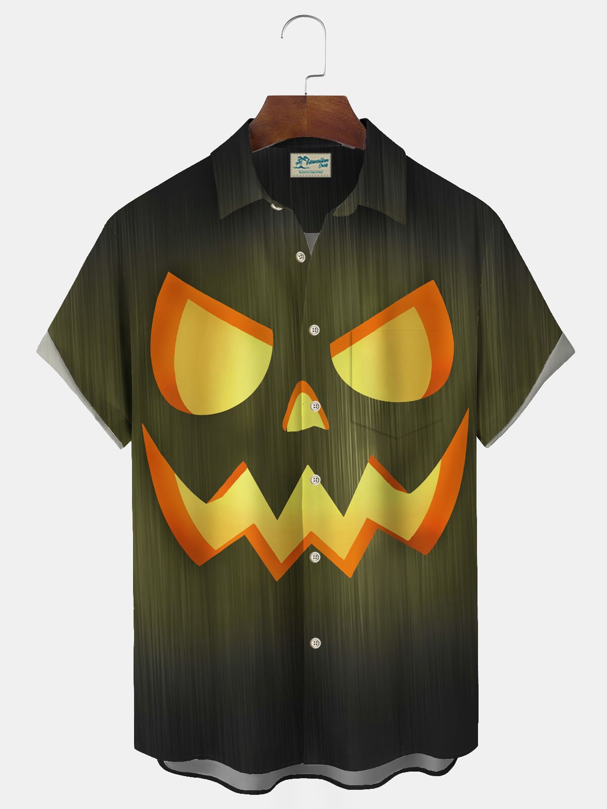 Alohadaddy Halloween Pumpkin Smiley Face Textured Print Men's Breast Pocket Button Short Sleeve Shirt