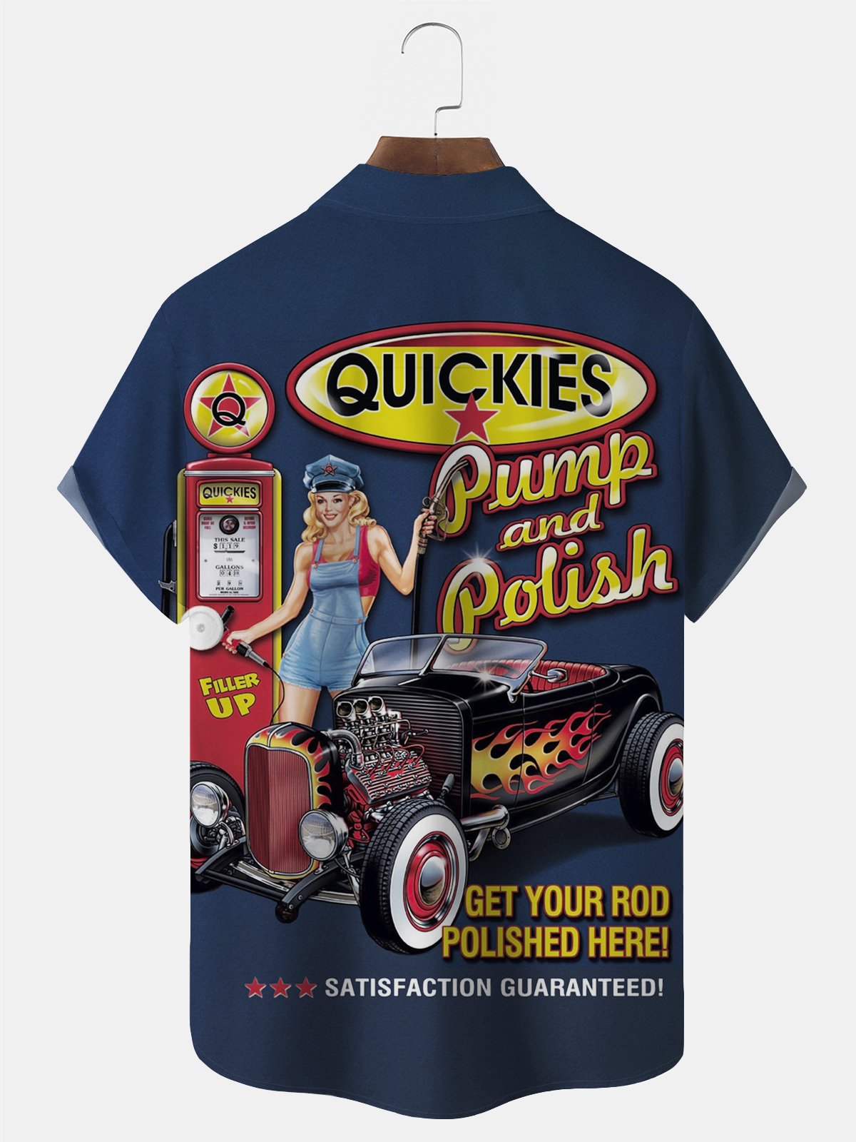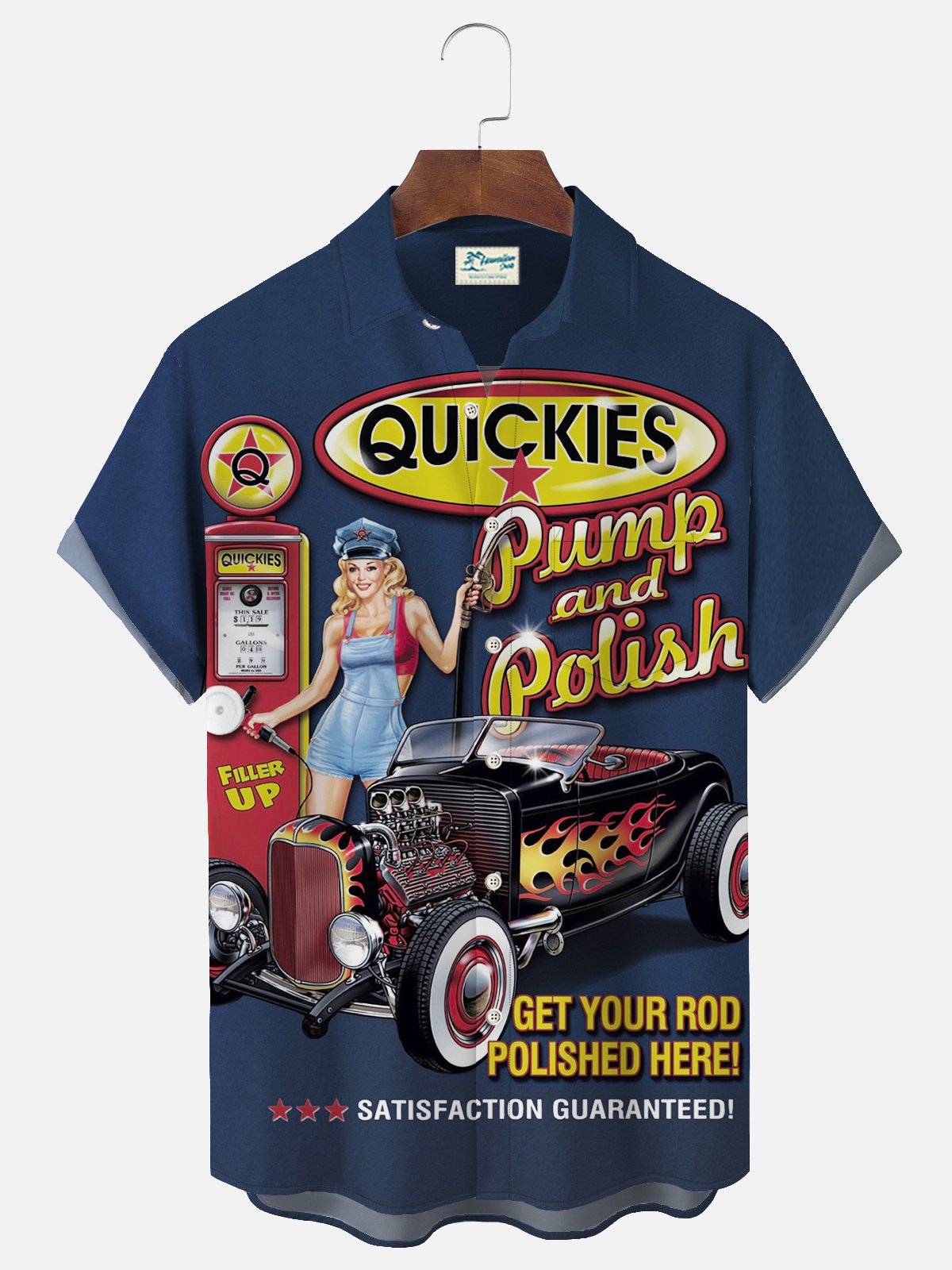 Alohadaddy 60‘s Retro Car Men's Hawaiian Shirts Hot Rod Art Casual Large Size Stretch Camp Shirts