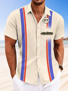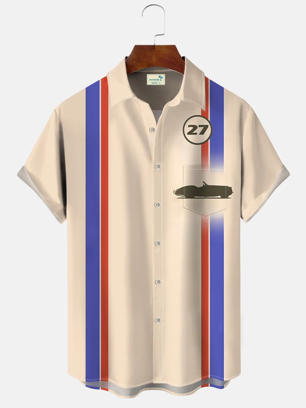 Alohadaddy Car Number Pocket Button Casual 50S Bowling Commuter Short Sleeve Shirt