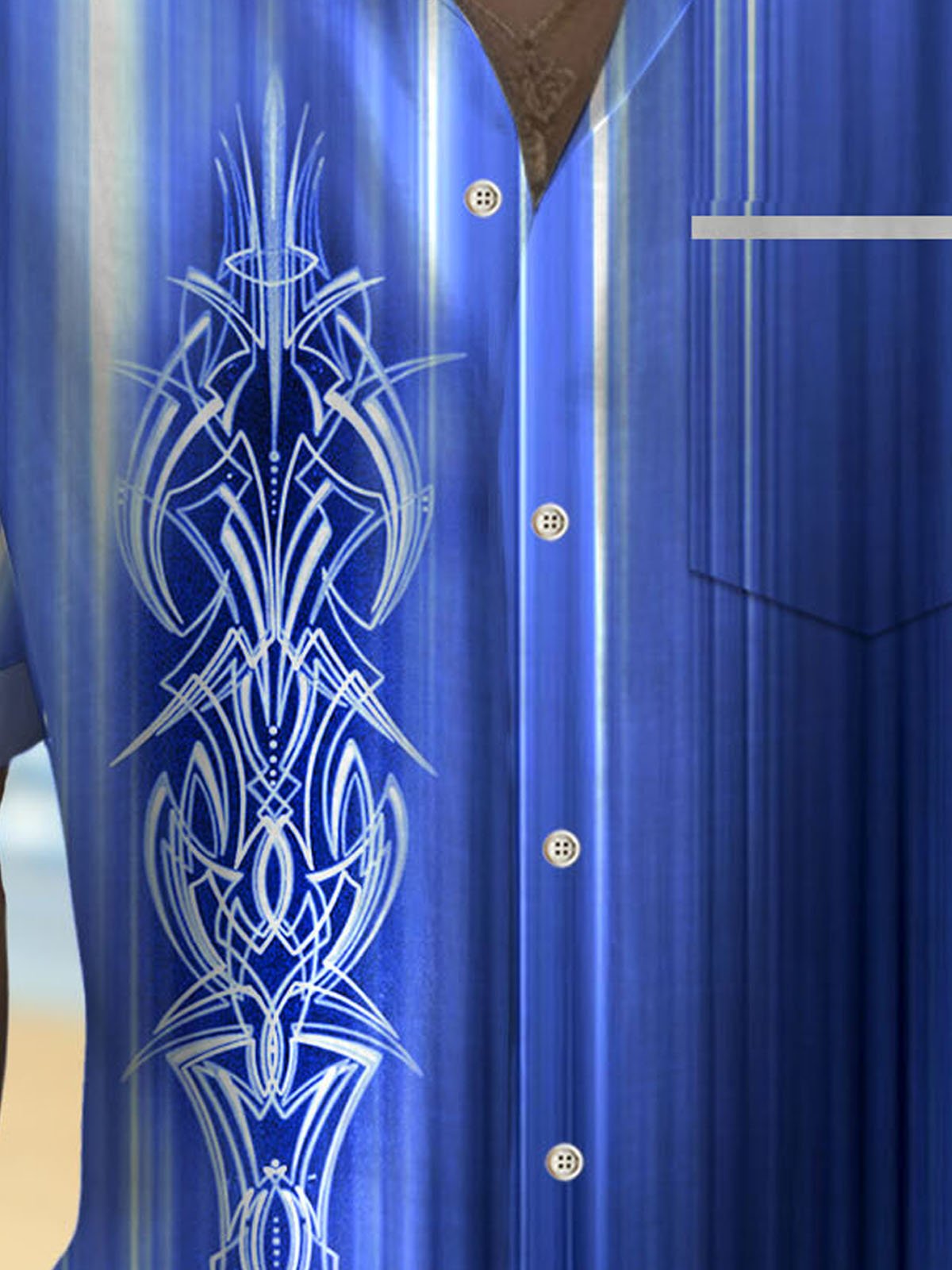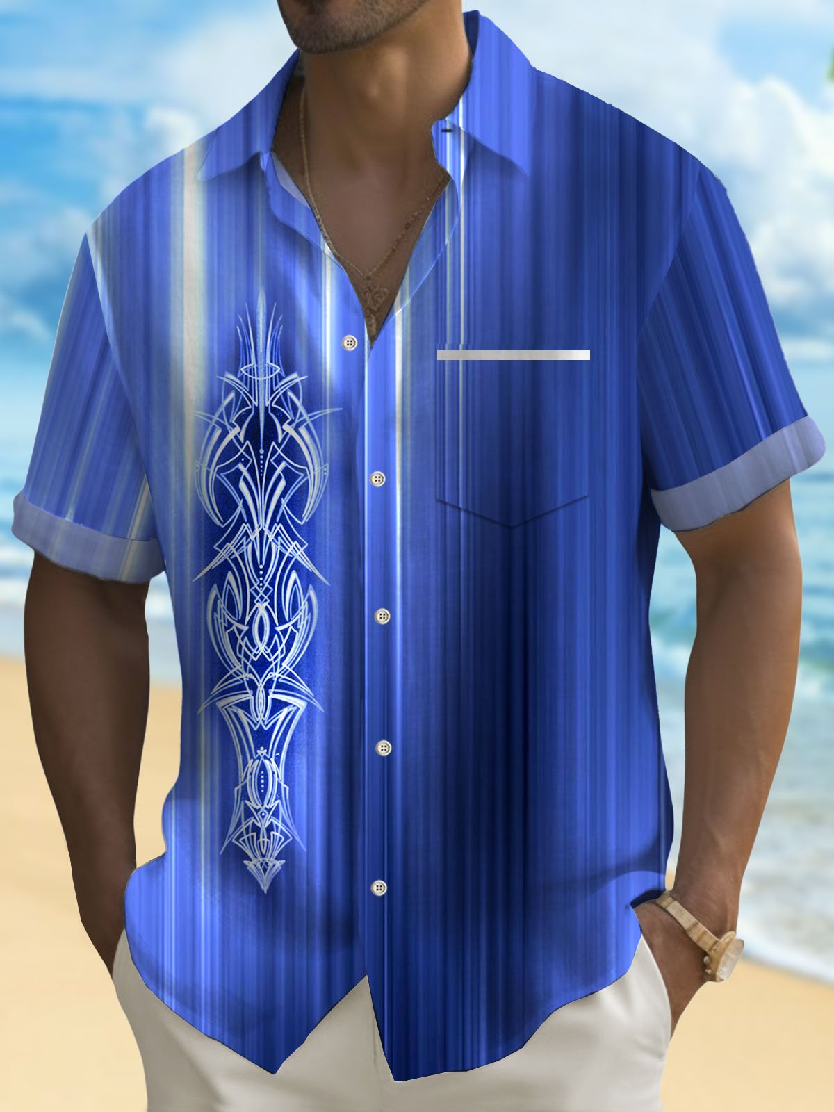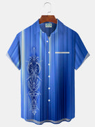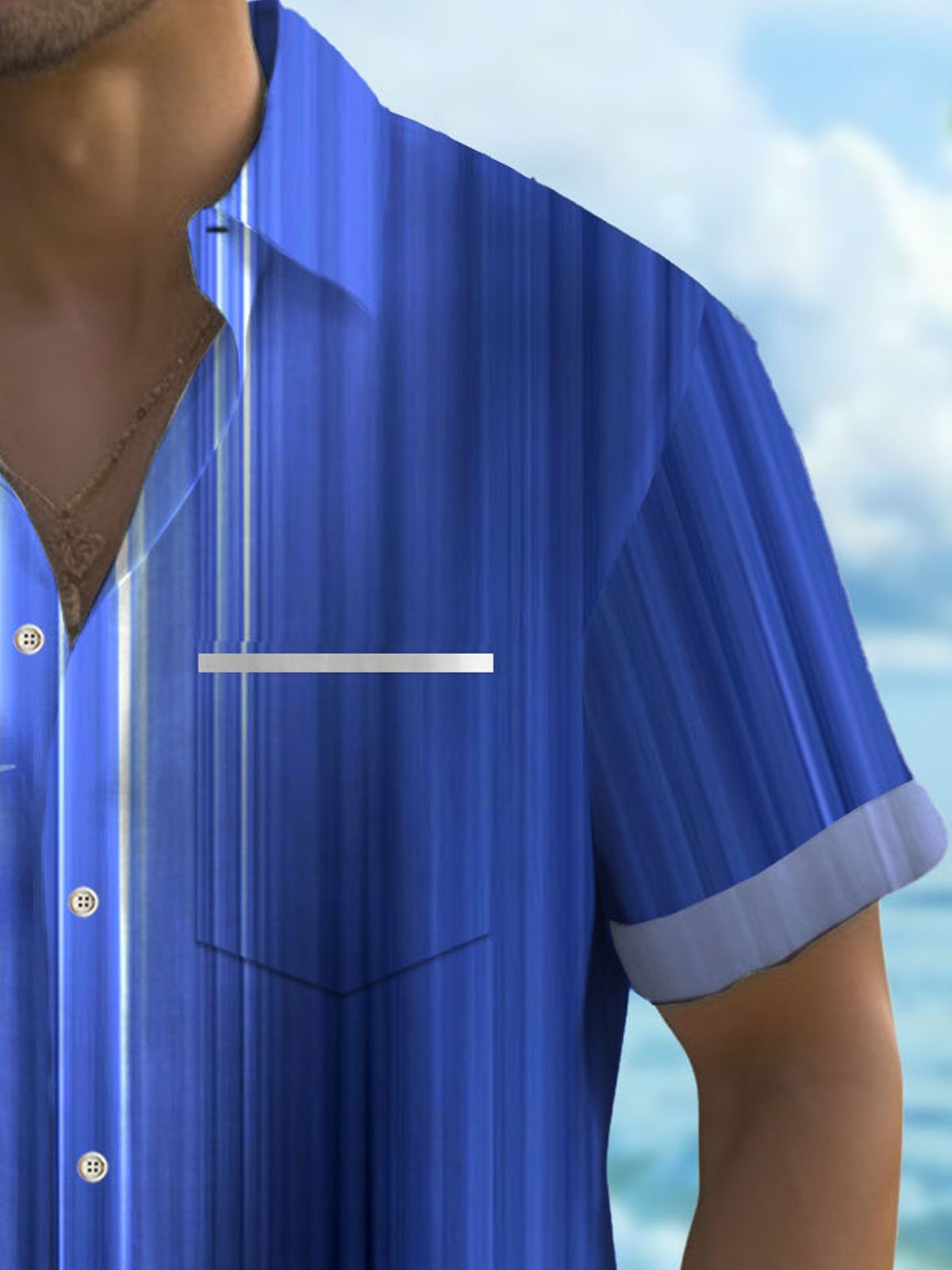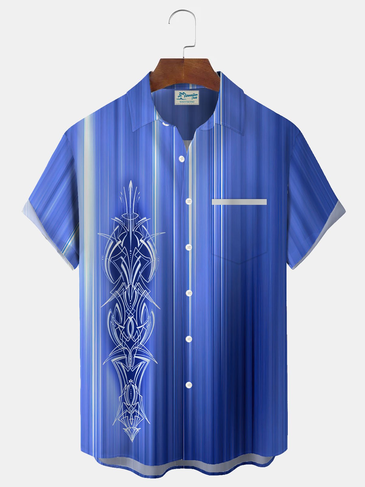 Alohadaddy Retro Car Pinstriped Bowling Gradient Print Men's Button Pocket Short Sleeve Shirt