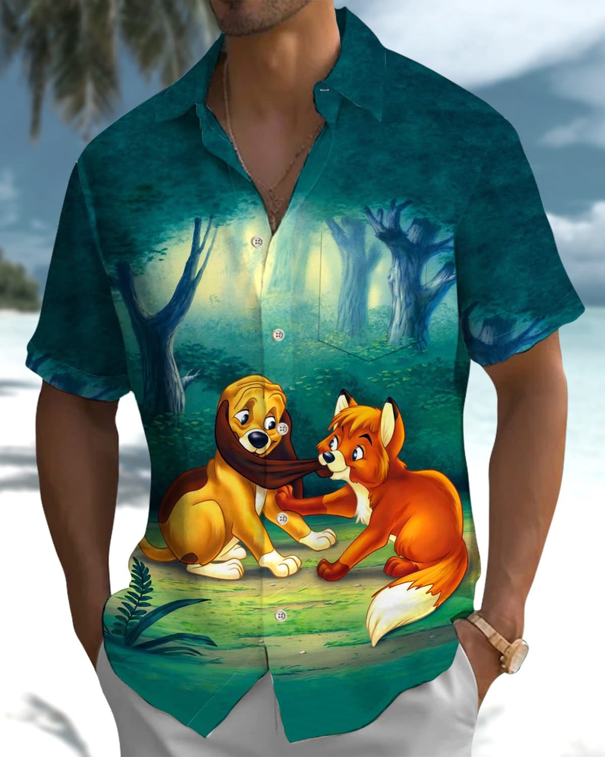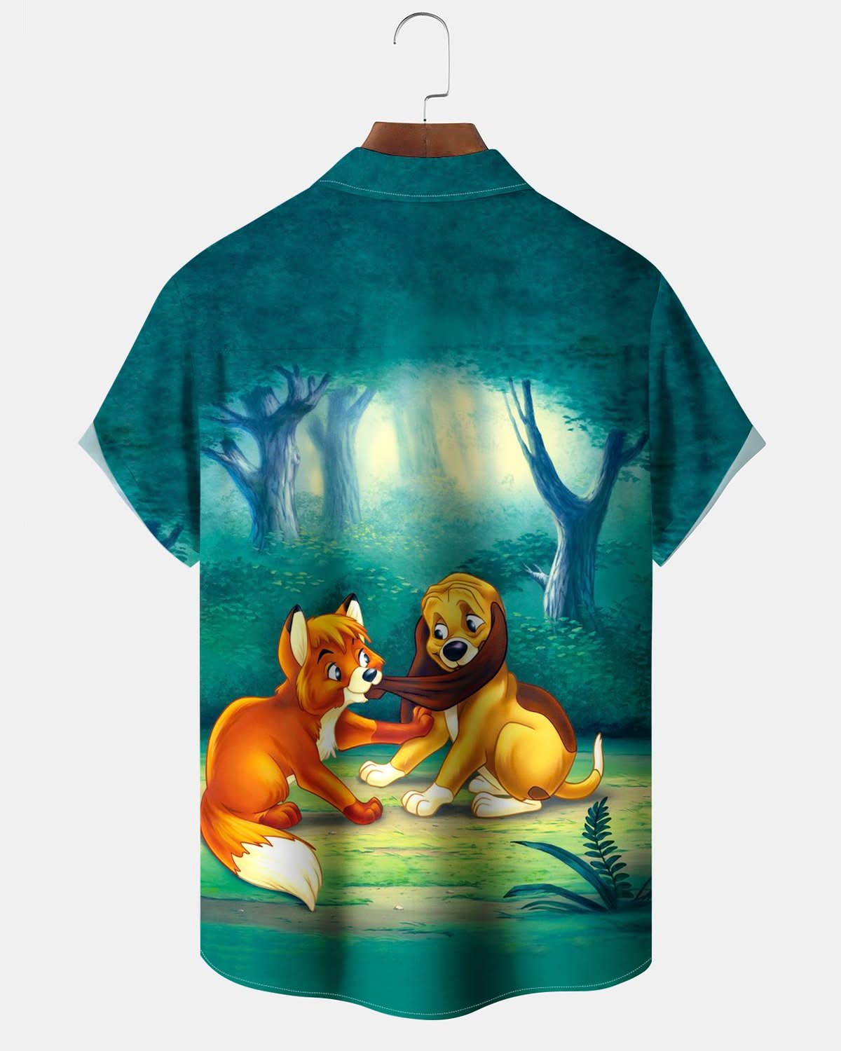 Alohadaddy® Retro Cartoon Animal Art Pocket Elastic Button Men's Short Sleeve Shirt Big & Tall