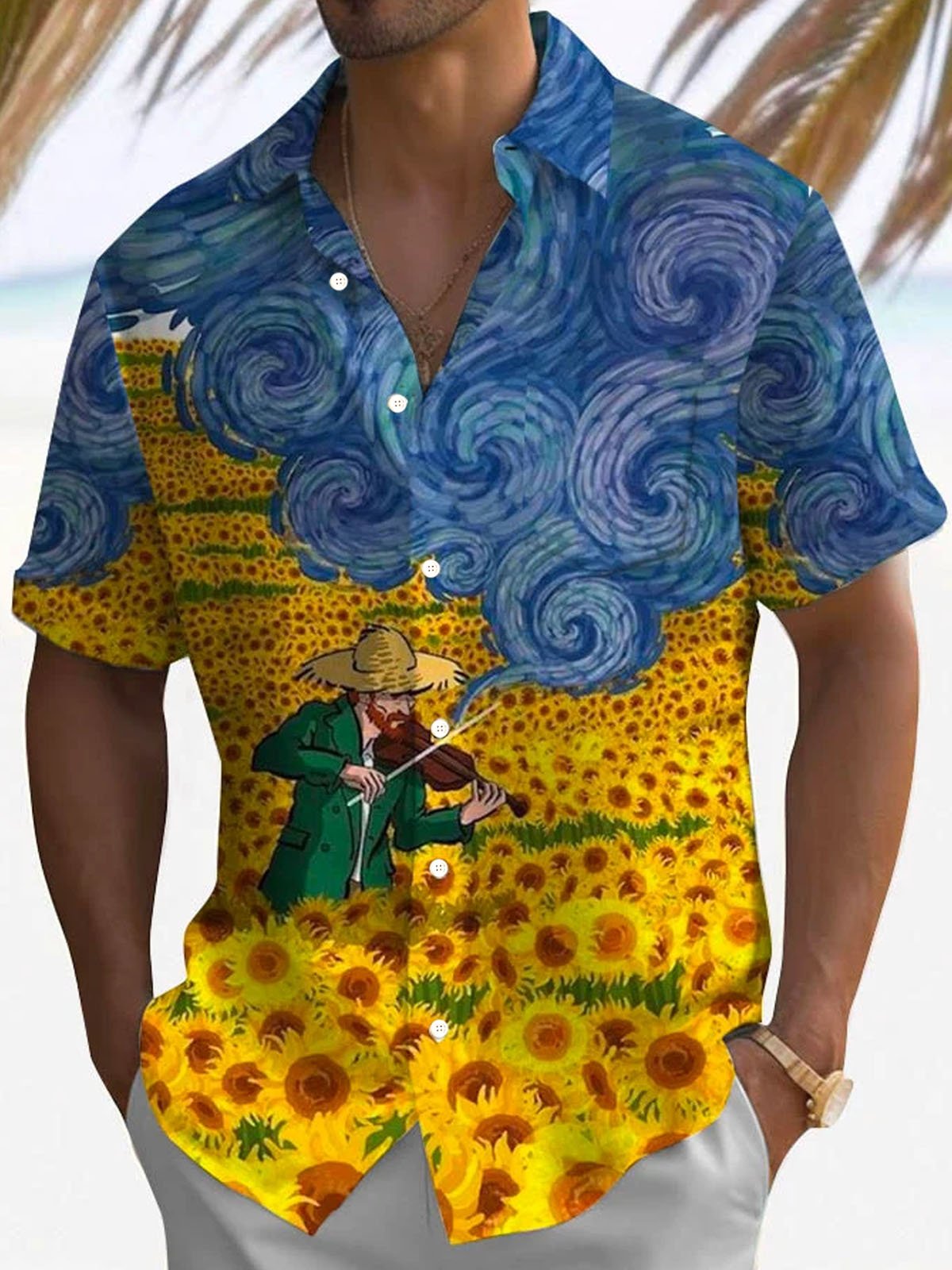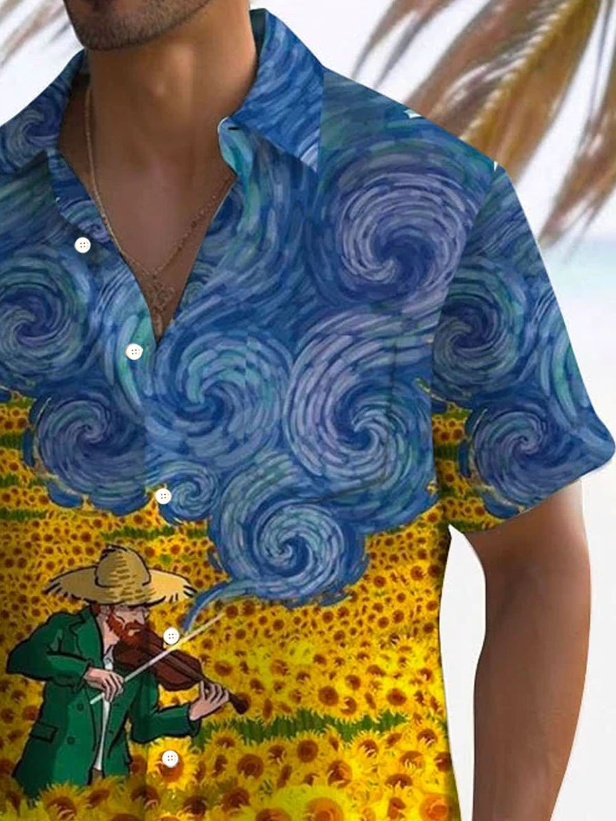 Alohadaddy Retro Oil Painting Art Music 3D Print Men's Button Pocket Short Sleeve Shirt Big & Tall