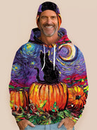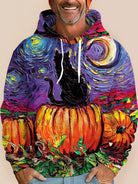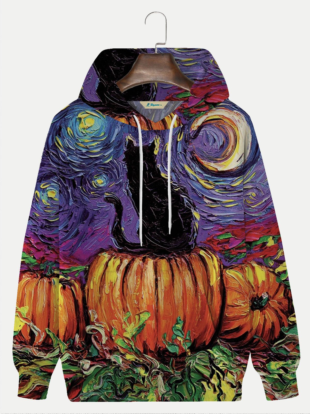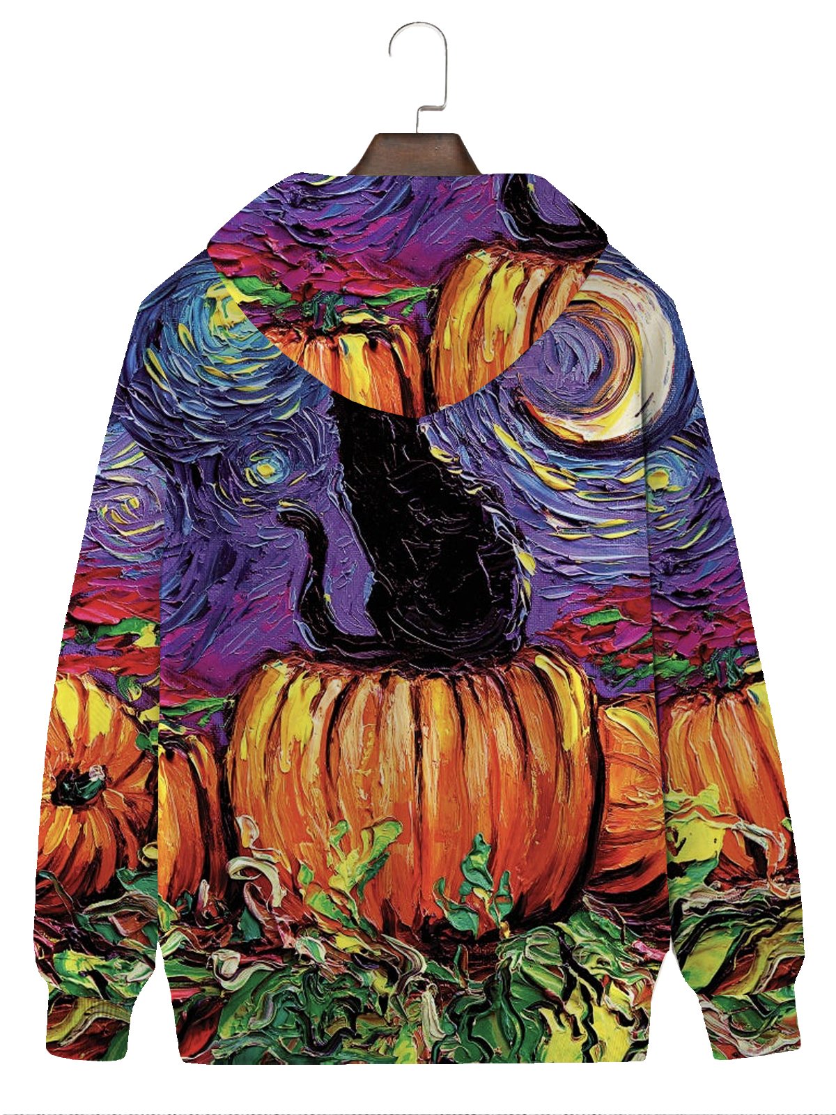 Alohadaddy Abstract Art Halloween Men Hoodies Black Cat Pumpkin Stretch Plus Size Stretch Sweatshirts