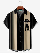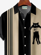 Alohadaddy Retro Bowling Funny Cat 3D Print Men's Button Pocket Short Sleeve Shirt Big & Tall