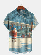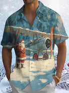 Alohadaddy® Christmas Biplane Santa Claus Printed Pocket Elastic Button Men's Short Sleeve Shirt Big & Tall