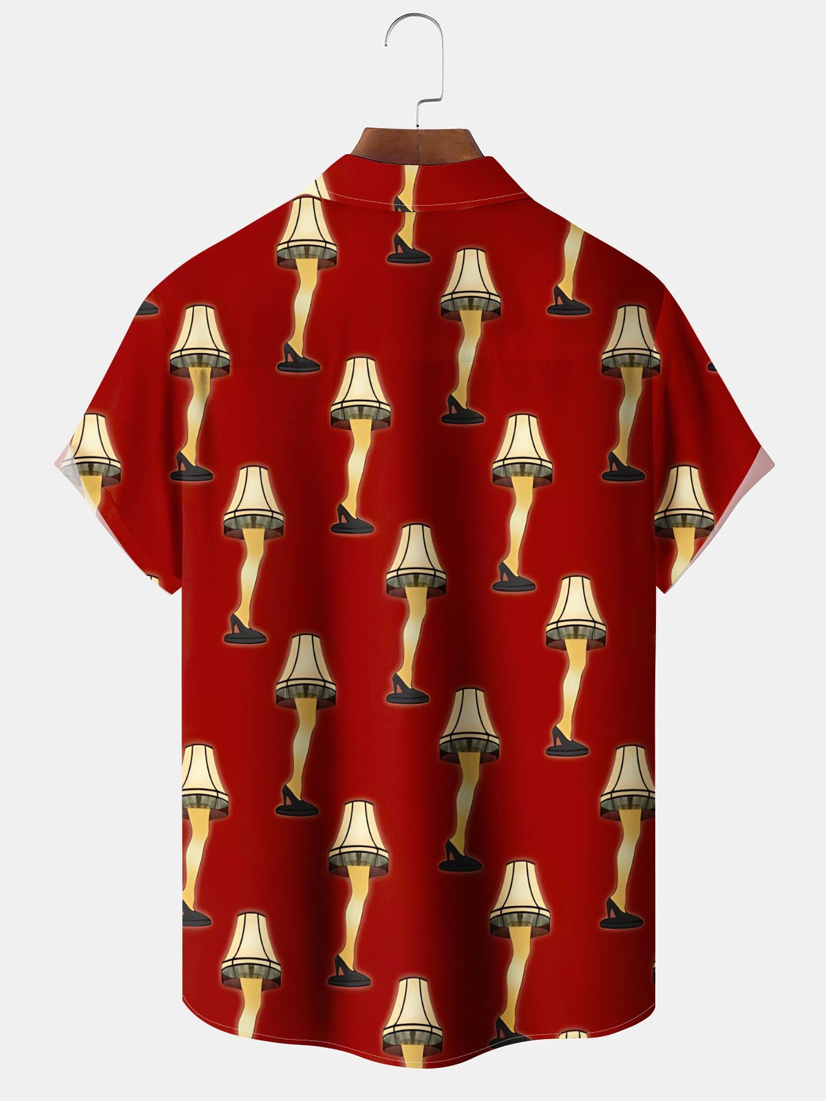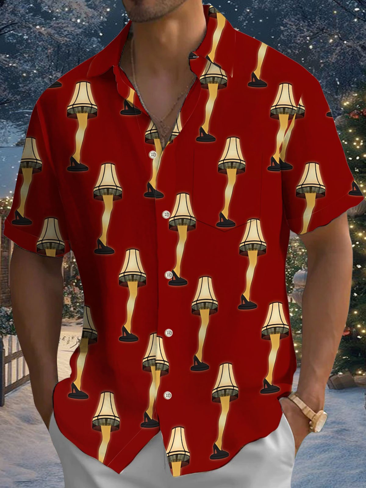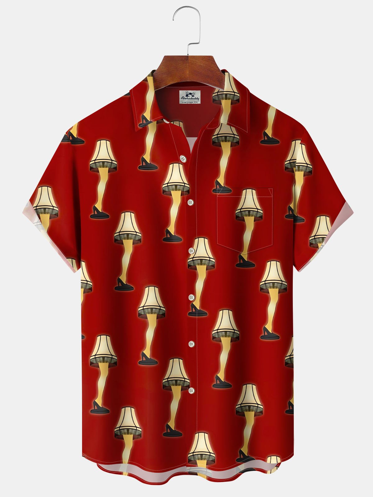 Alohadaddy® Christmas Leg Light Print Pocket Elastic Button Closure Men's Short Sleeve Shirt Big & Tall