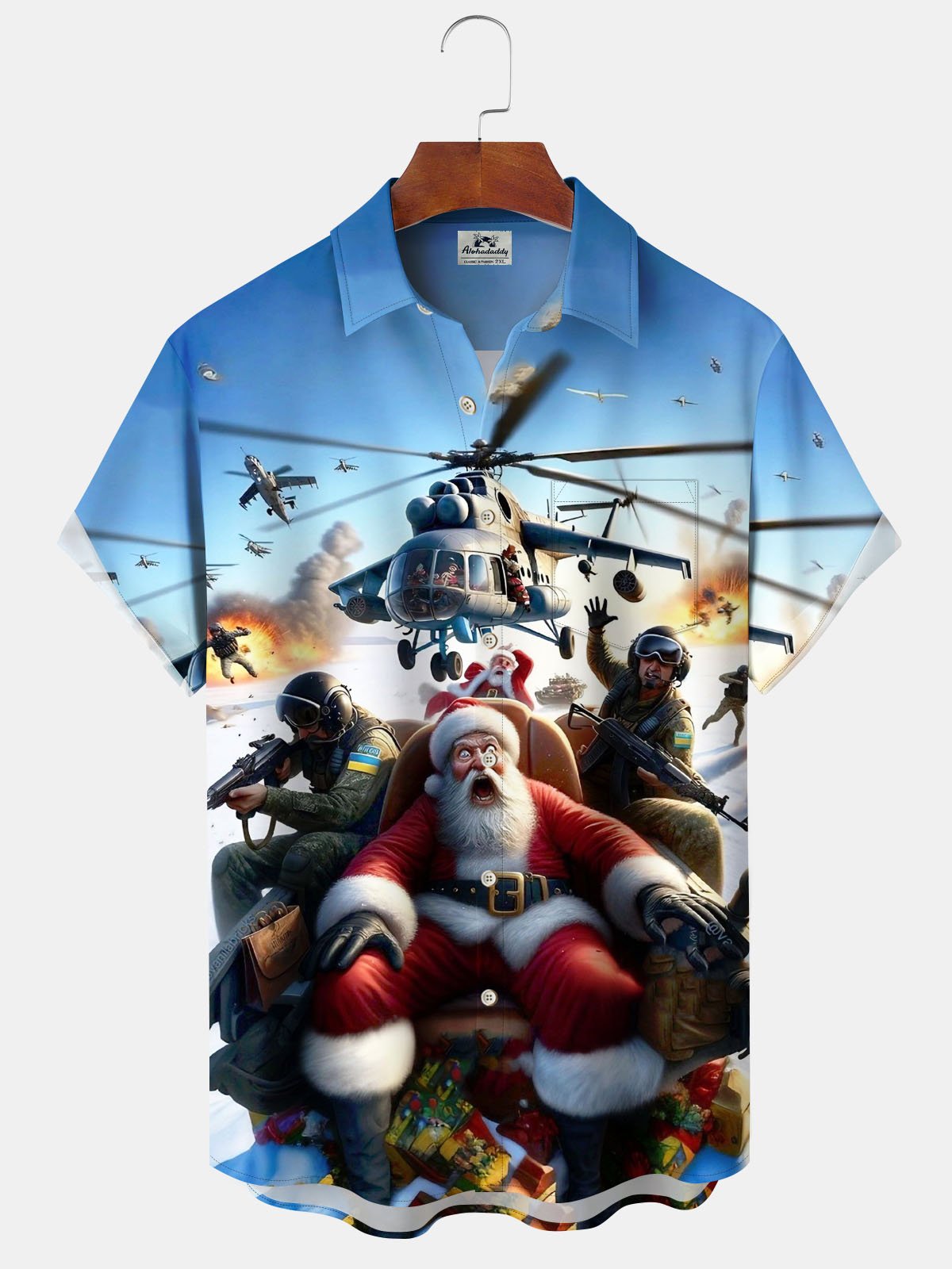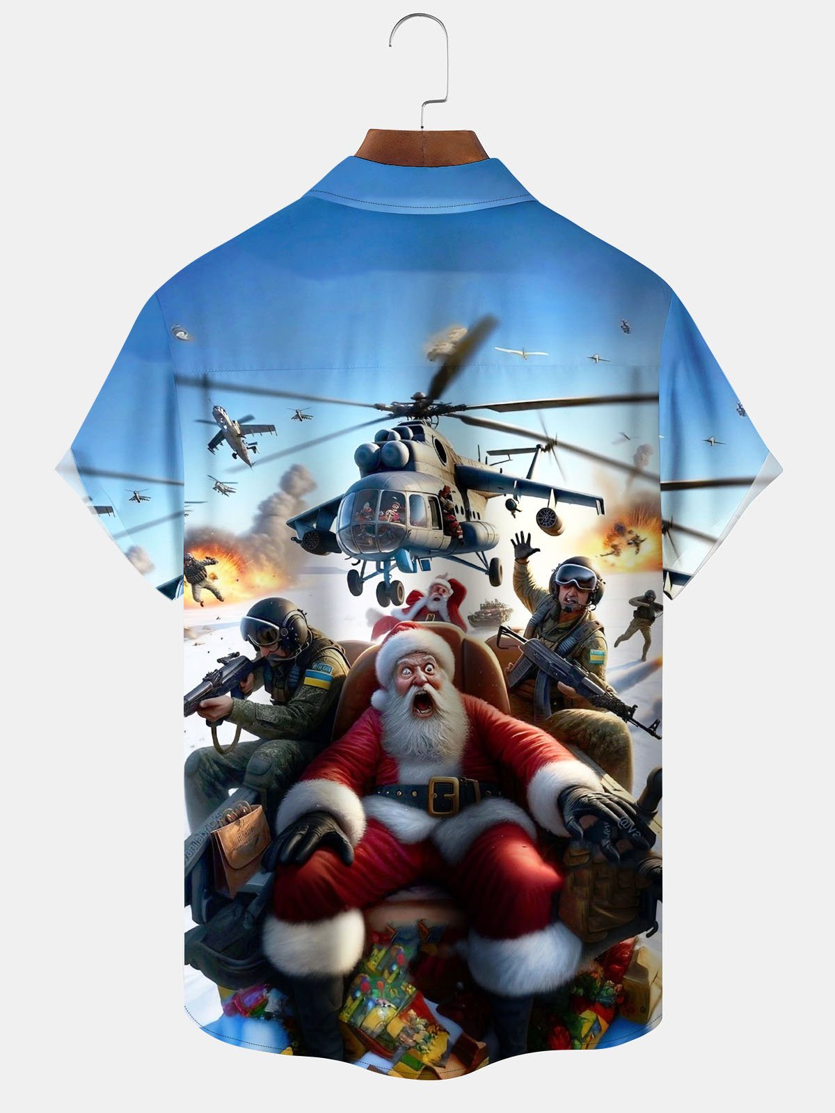 Alohadaddy® Christmas Santa Claus Graphic Print Pocket Elastic Button Men's Short Sleeve Shirt Big & Tall