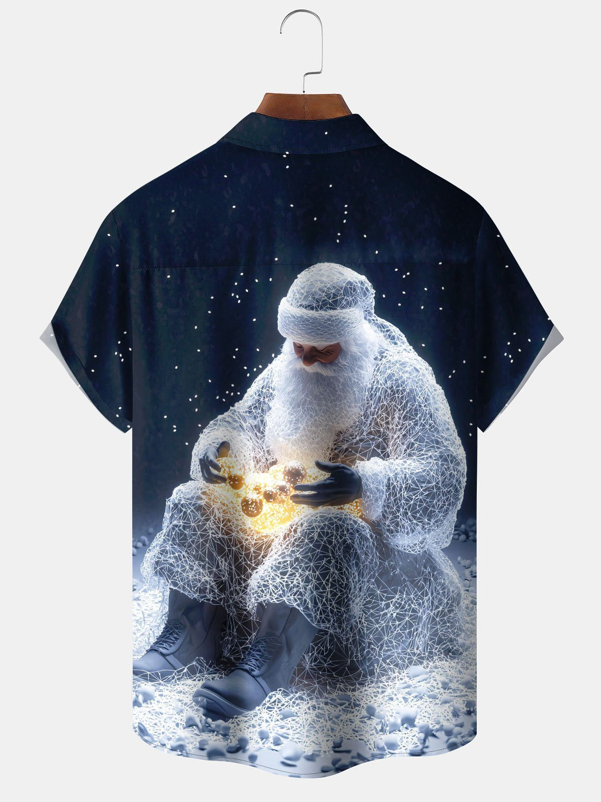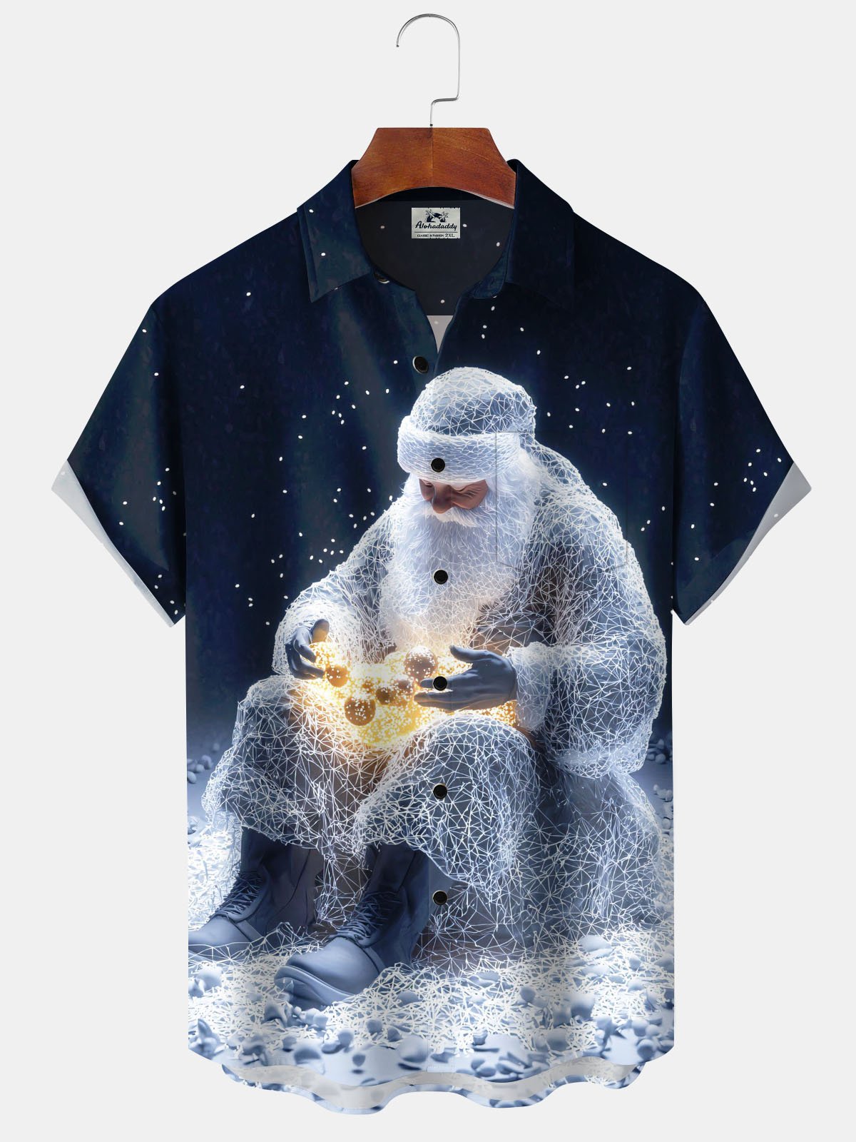 Alohadaddy® Christmas Santa Claus Print Pocket Elastic Button Men's Short Sleeve Shirt Big & Tall