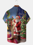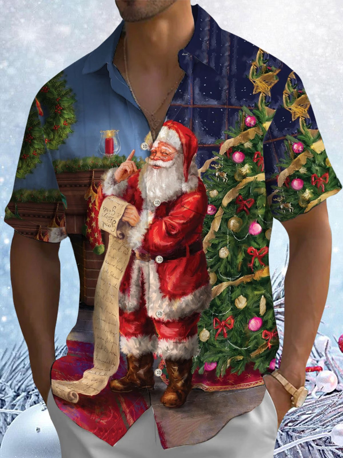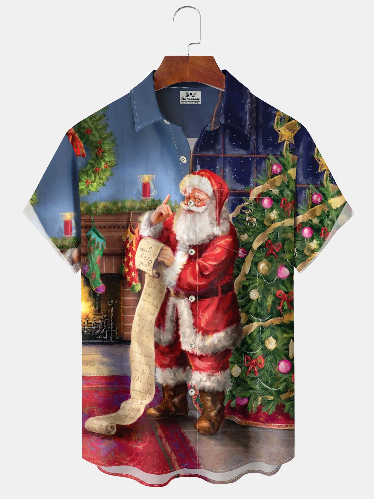 Alohadaddy® Christmas Santa Claus Print Pocket Elastic Button Men's Short Sleeve Shirt Big & Tall