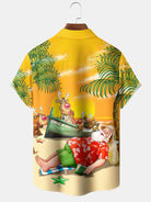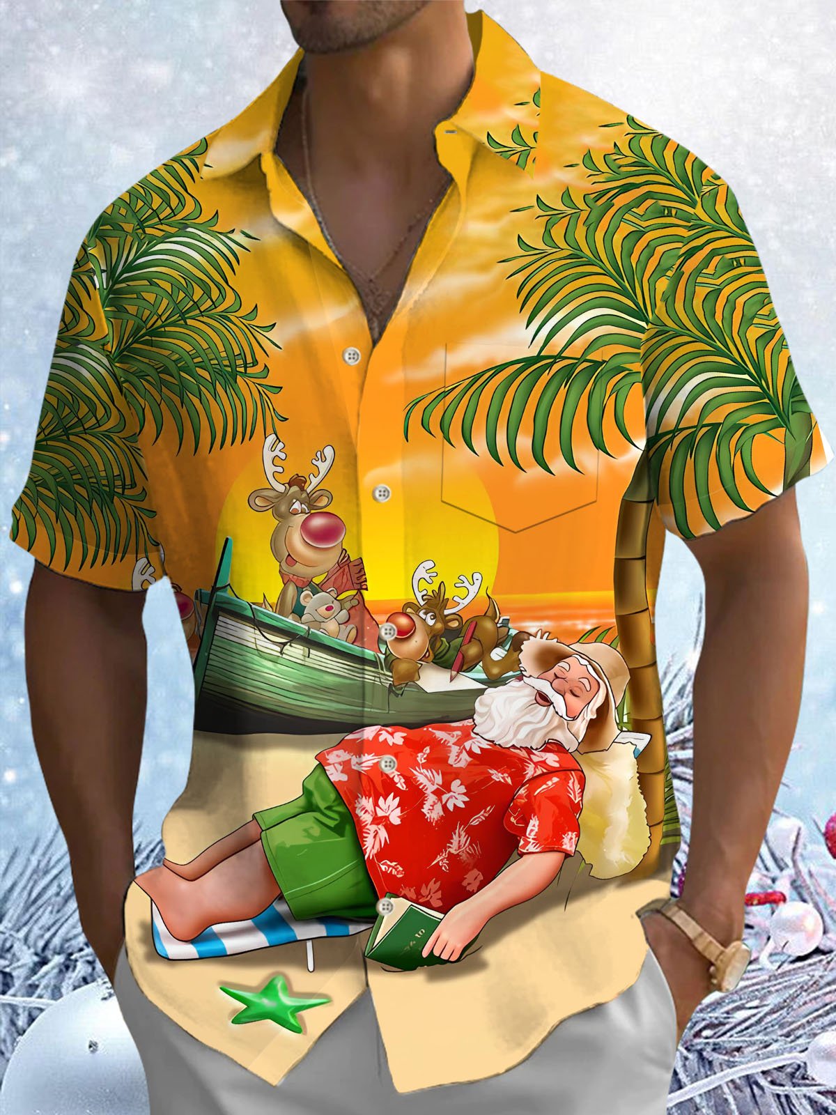 Alohadaddy® Christmas Santa Claus Print Pocket Elastic Button Men's Short Sleeve Shirt Big & Tall