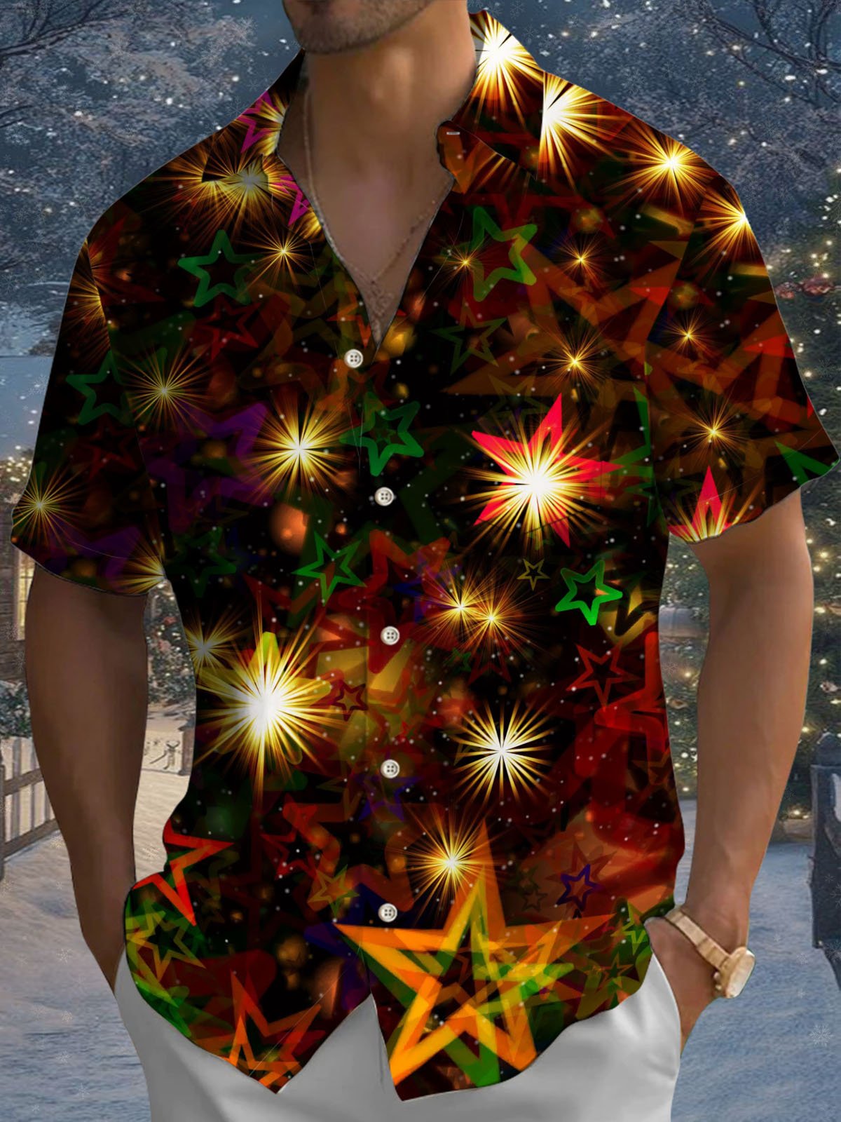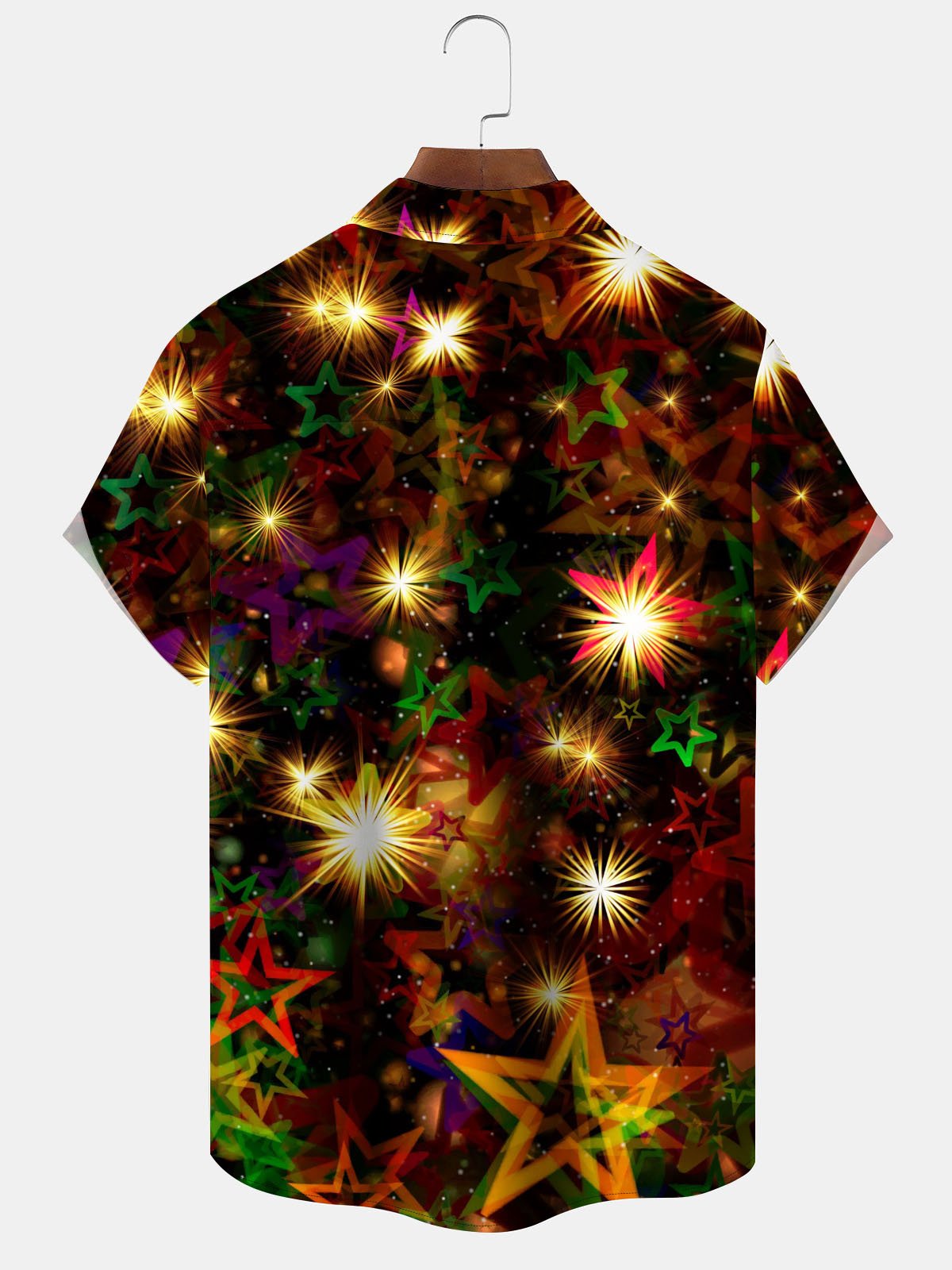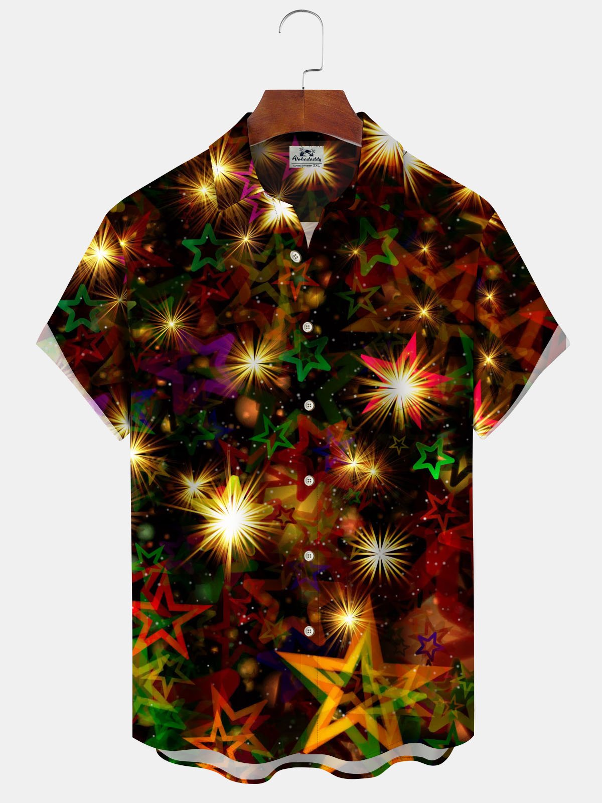 Alohadaddy® Christmas Star Print Pocket Elastic Button Men's Short Sleeve Shirt Big & Tall