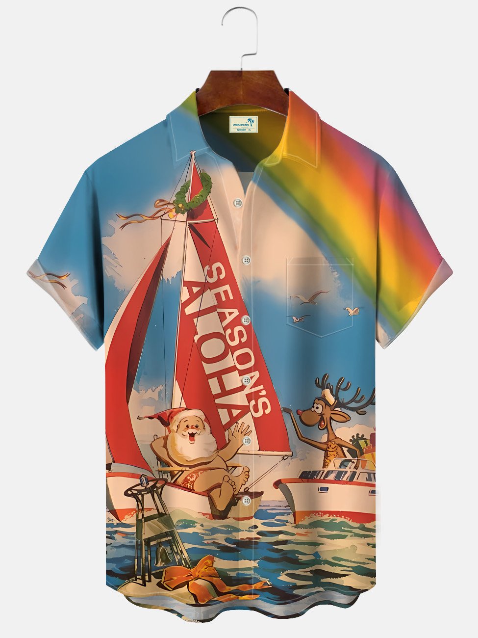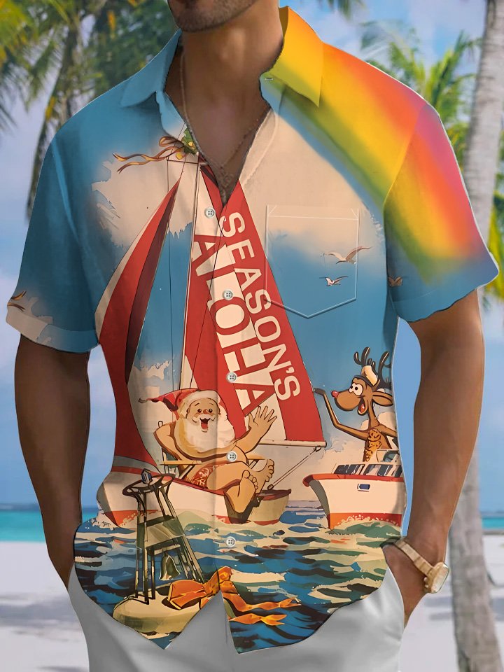 Alohadaddy Christmas Beach Party Button Pocket Casual Vacation Shirt
