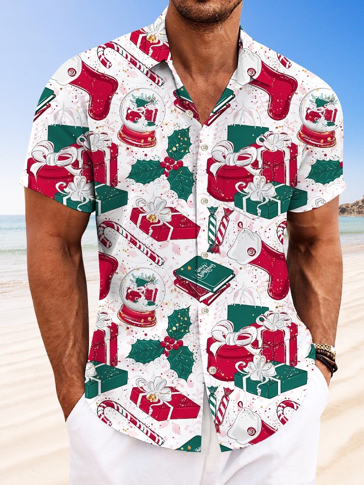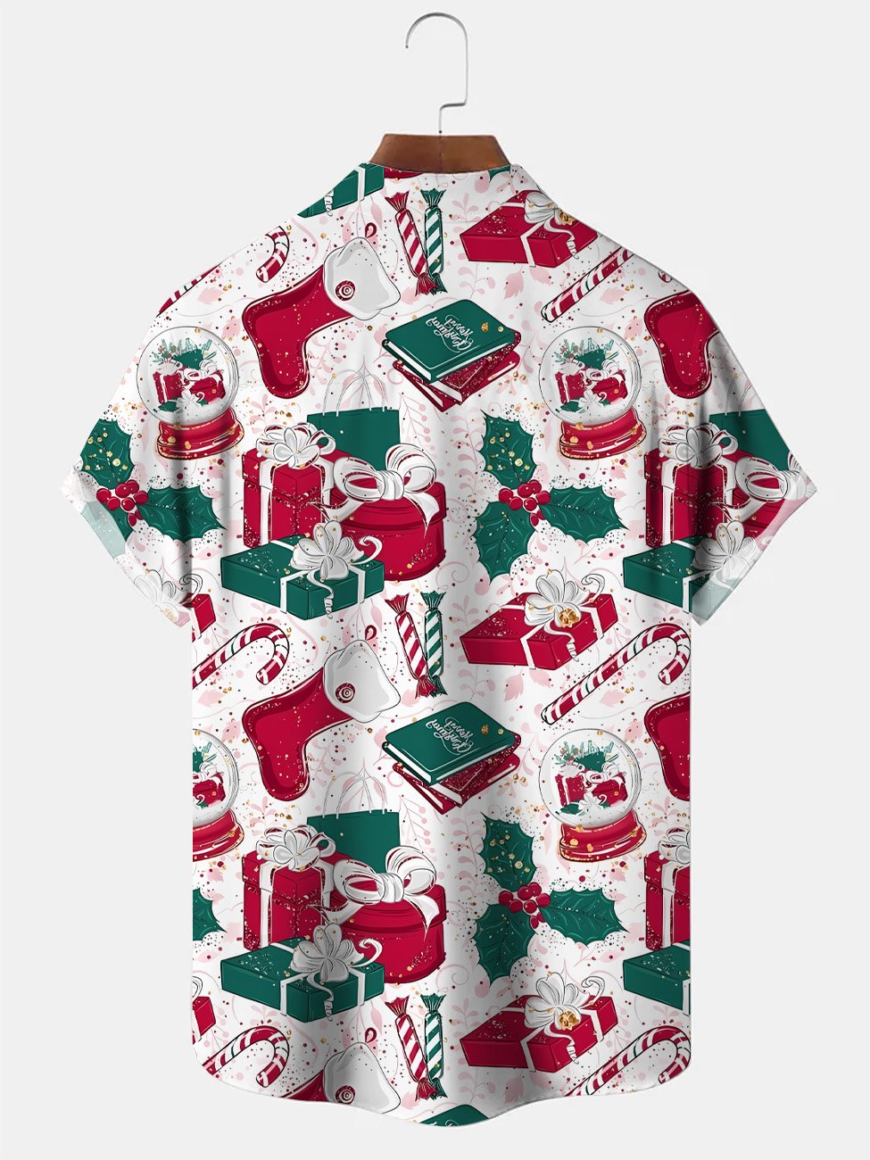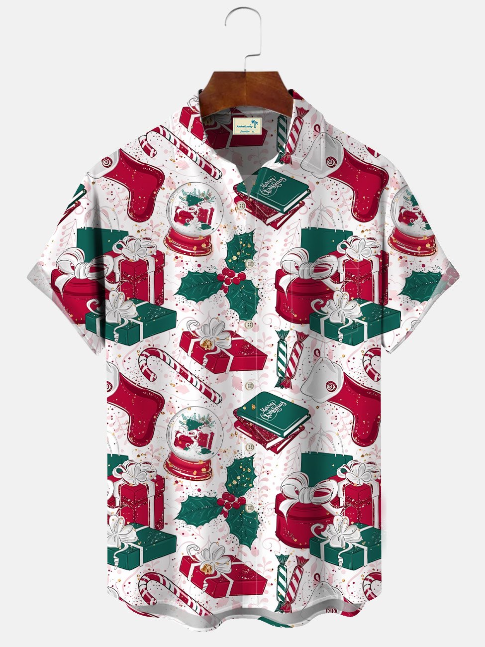 Alohadaddy Christmas Button Pocket Casual Short Sleeve Shirt