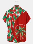 Alohadaddy Christmas Coconut Diamond Red Men's Hawaiian Shirt Stretch Aloha Camp Pocket Shirt