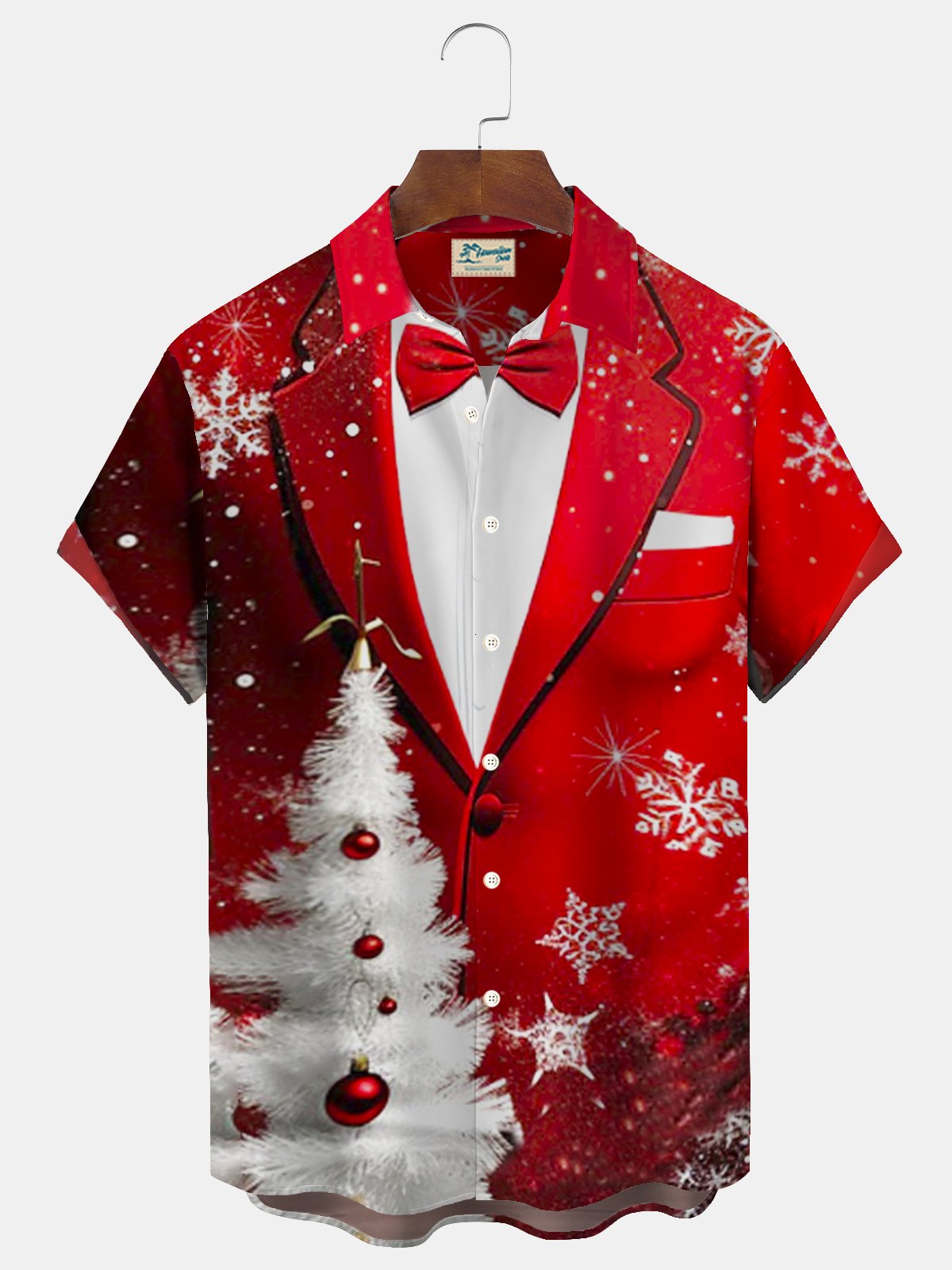 Alohadaddy Christmas Costume Decoration 3D Digital Printing Men's Button Pocket Short Sleeve Shirt Big & Tall
