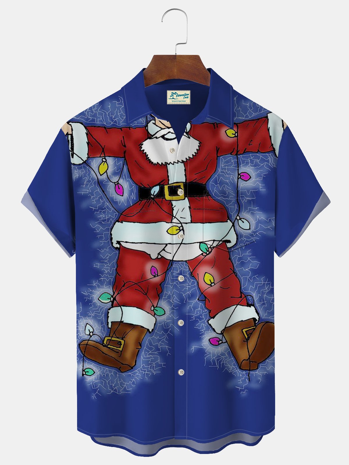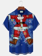 Alohadaddy Christmas Holiday Blue Men's Shirt Santa Claus Retro 50's Cartoon Fun Pocket Camp Shirt Big Tall