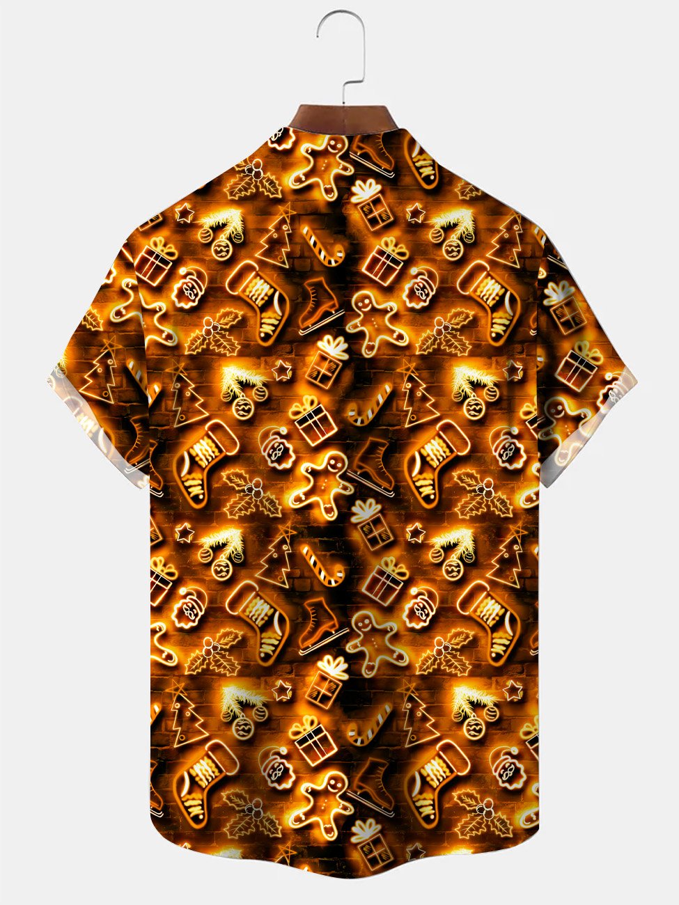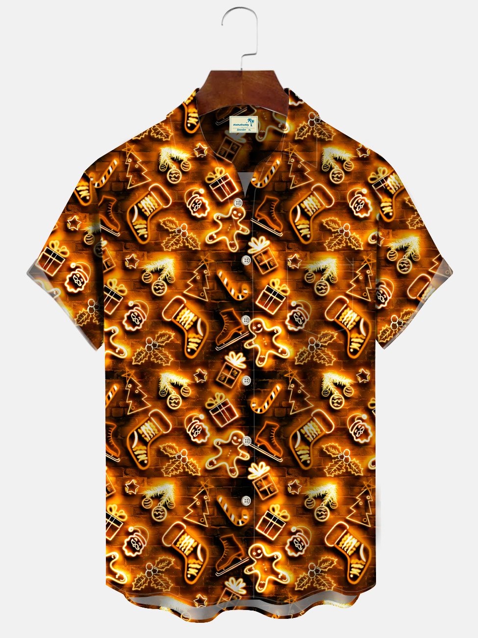 Alohadaddy Christmas Lights Button Pocket Casual Short Sleeve Shirt