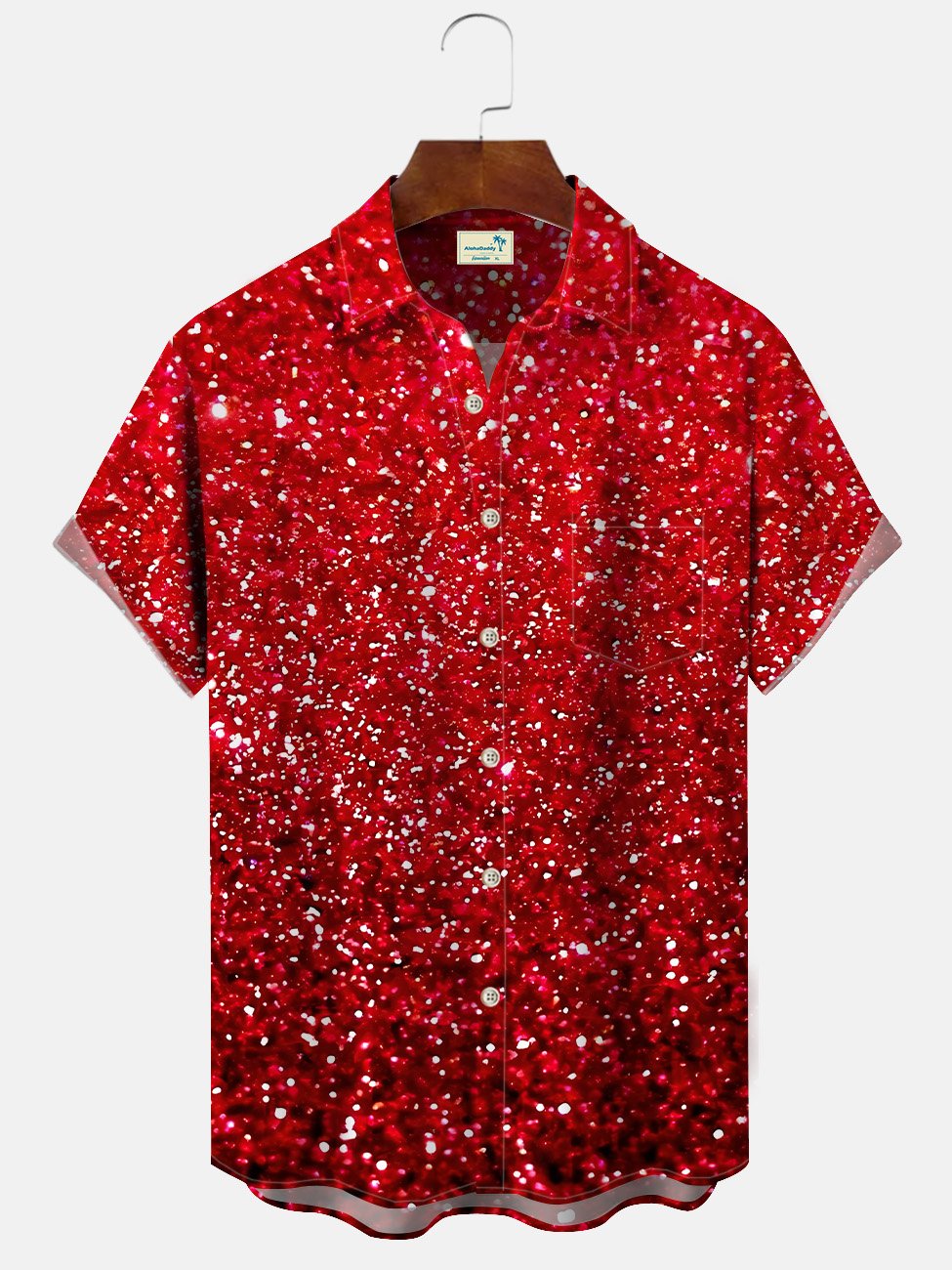 Alohadaddy Christmas Lights Fluorescent Pocket Button Casual Short Sleeve Shirt