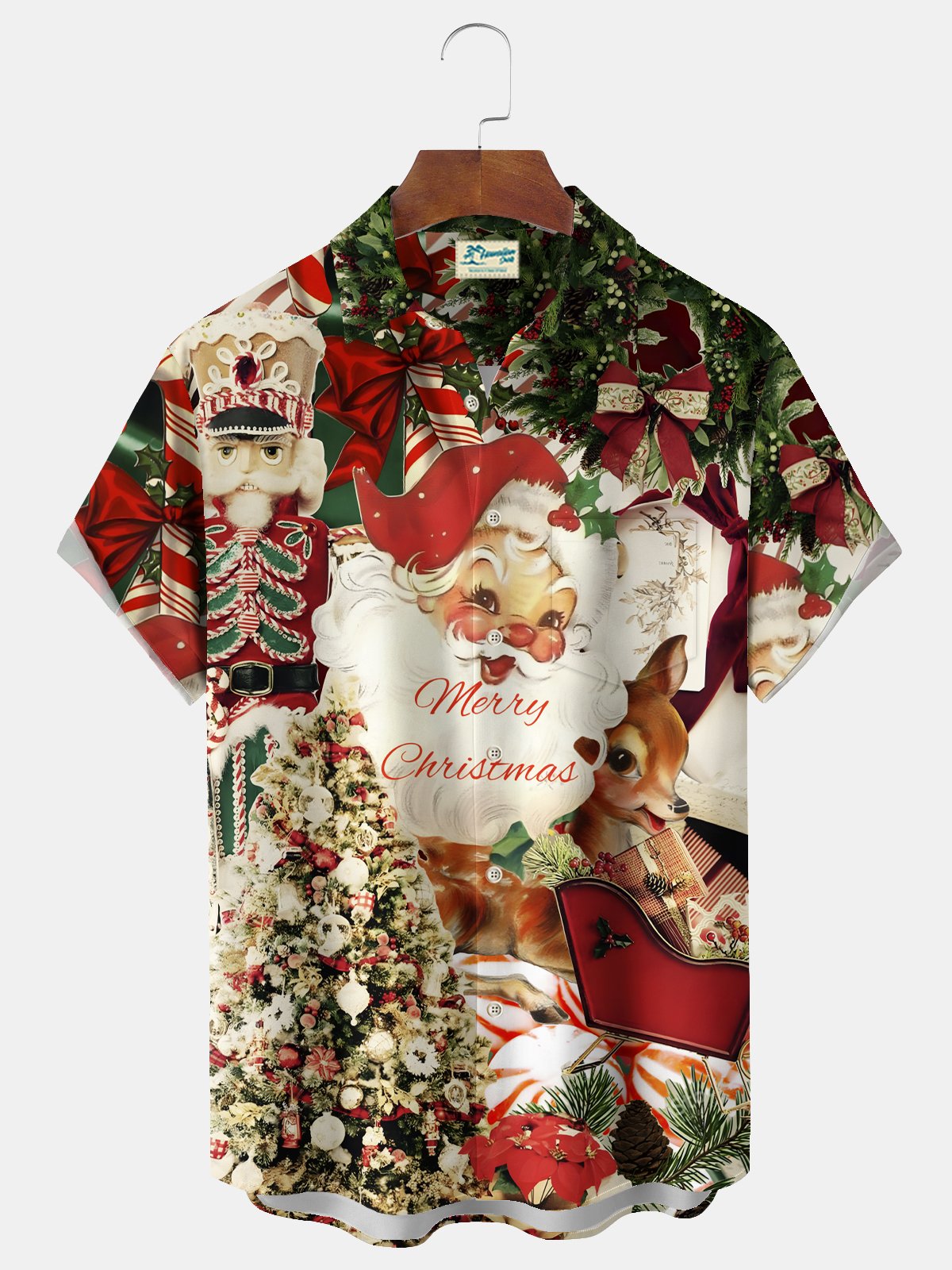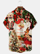 Alohadaddy Christmas Men's Santa Claus Elk Print Chest Pocket Stretch Hawaiian Shirt