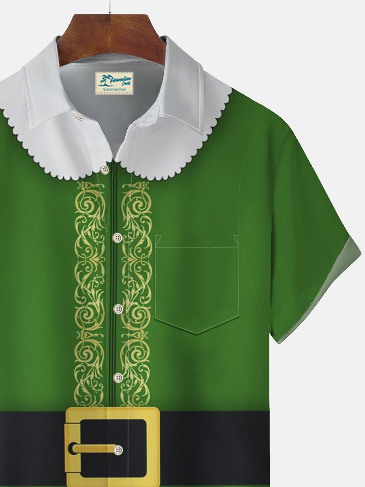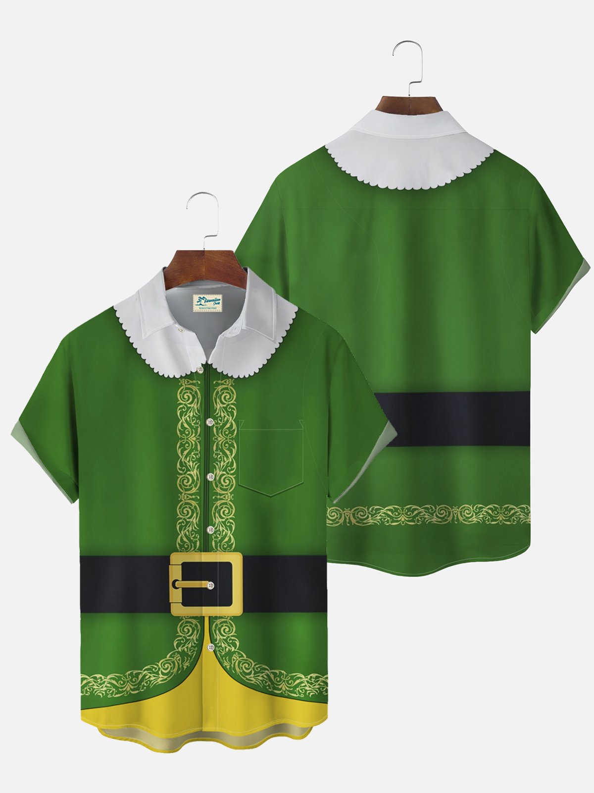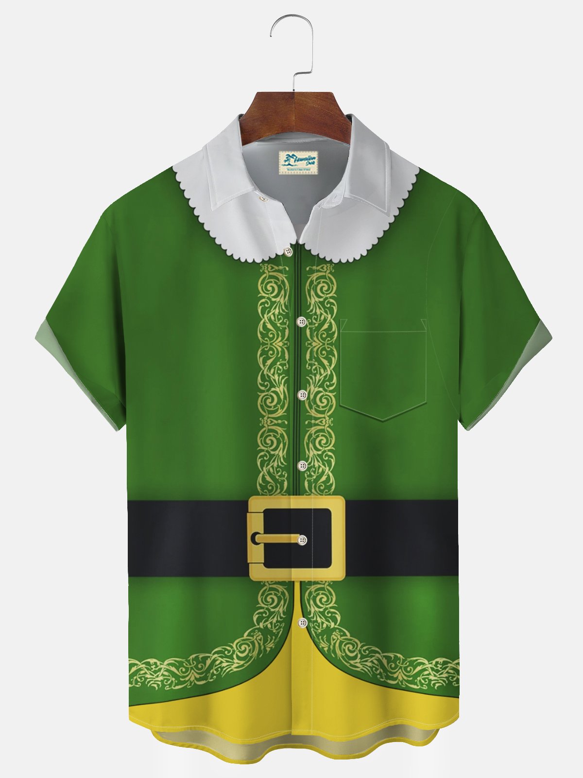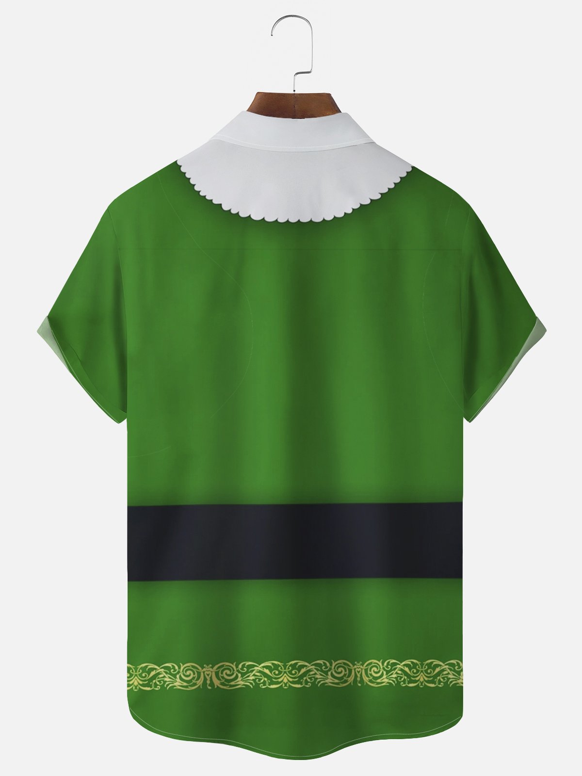 Alohadaddy Christmas Movie Green Men's Shirts Fun Cartoon Costume Stretch Art Camp Pocket Shirt Big Tall