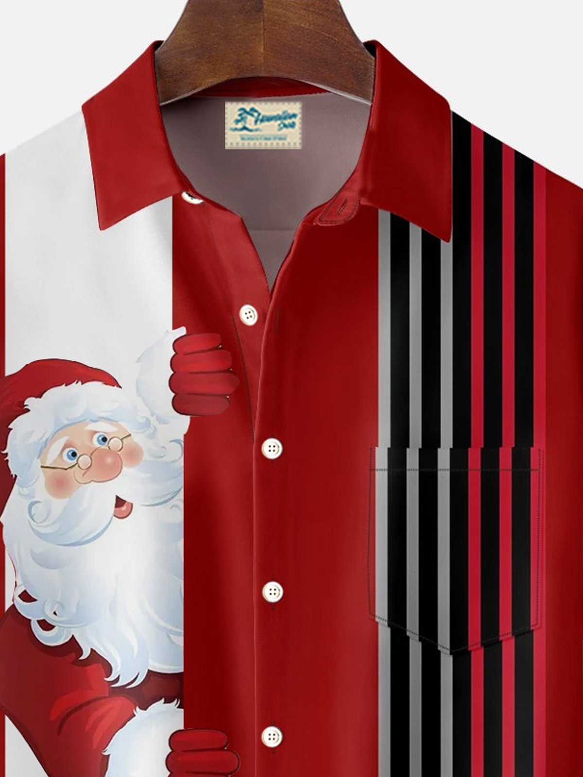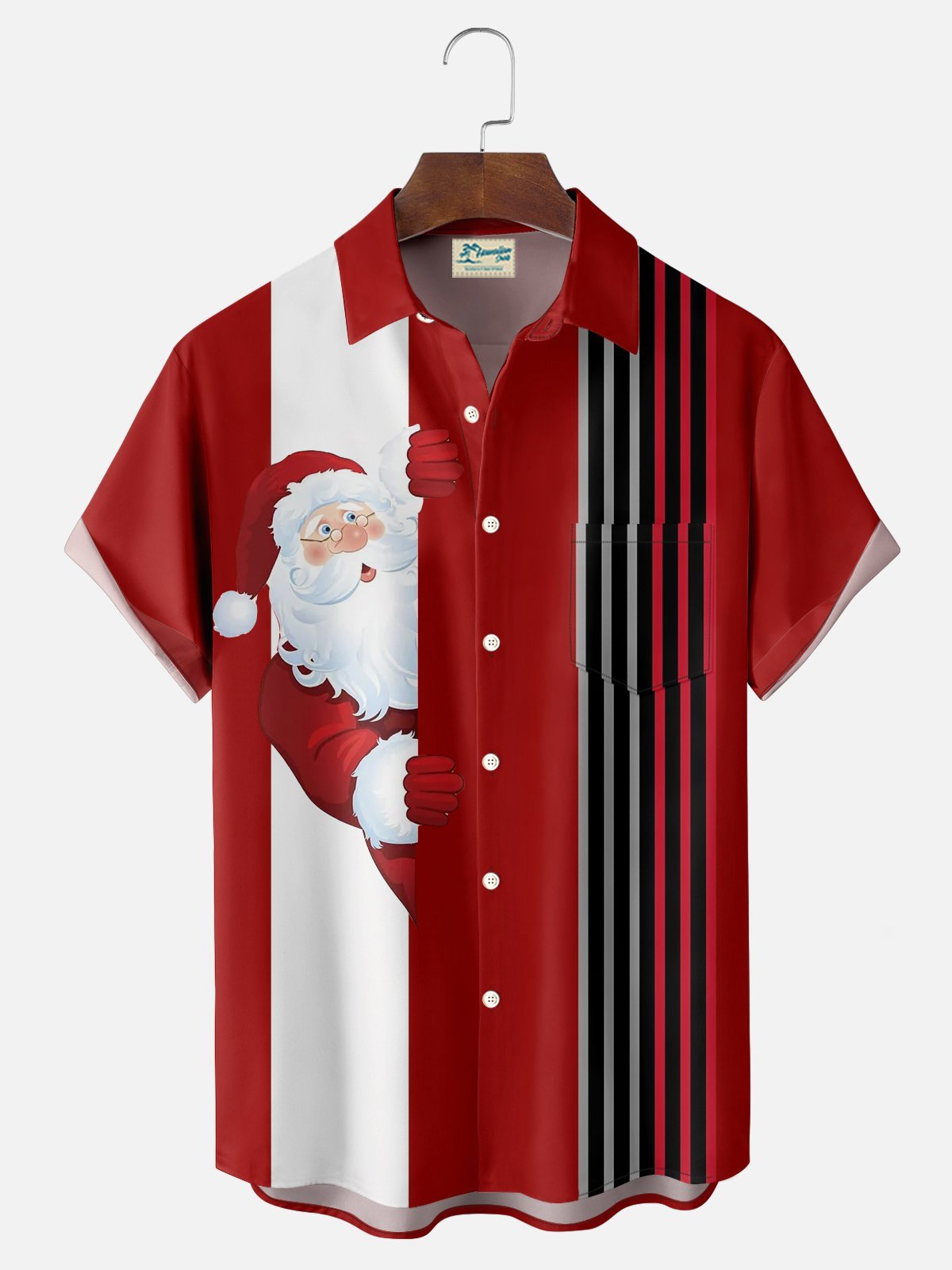 Alohadaddy Christmas Santa Hat Retro Bowling 3D Digital Print Men's Button Pocket Short Sleeve Shirt Big & Tall