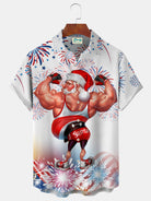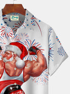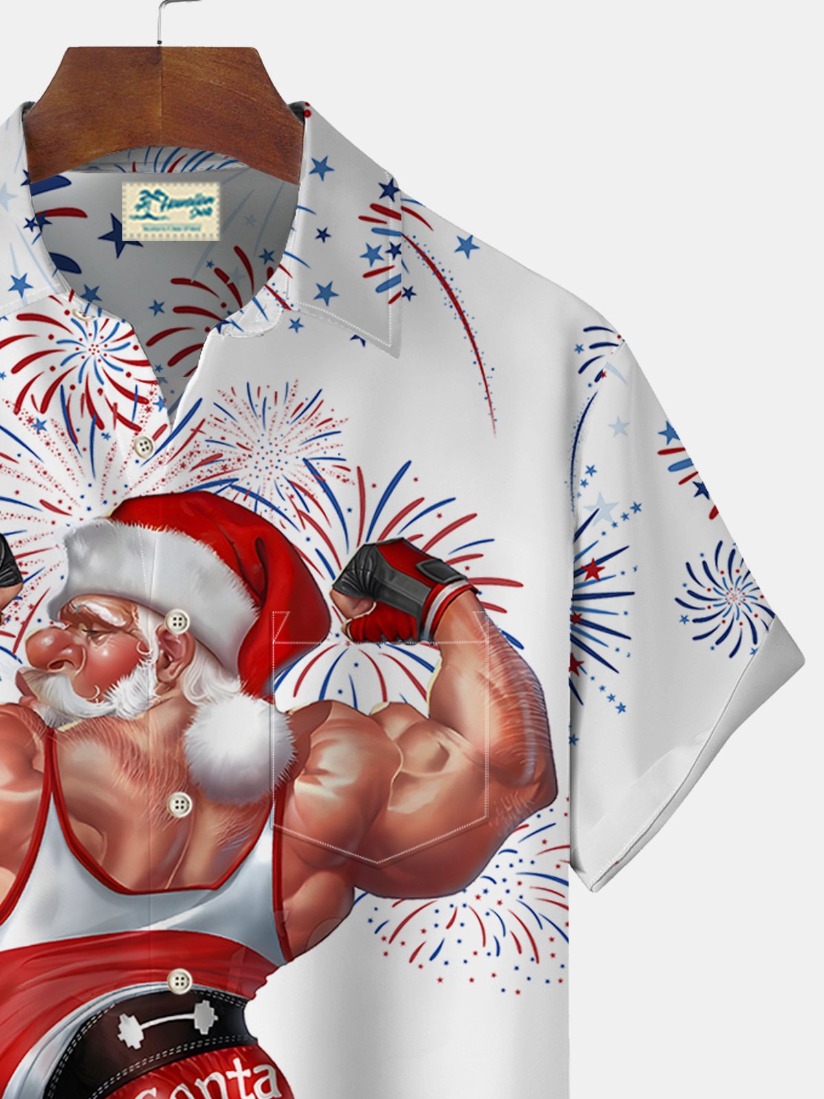 Alohadaddy Christmas Santa Print Beach Men's Hawaiian Oversized Short Sleeve Shirt with Pockets