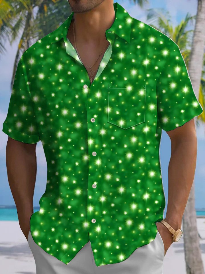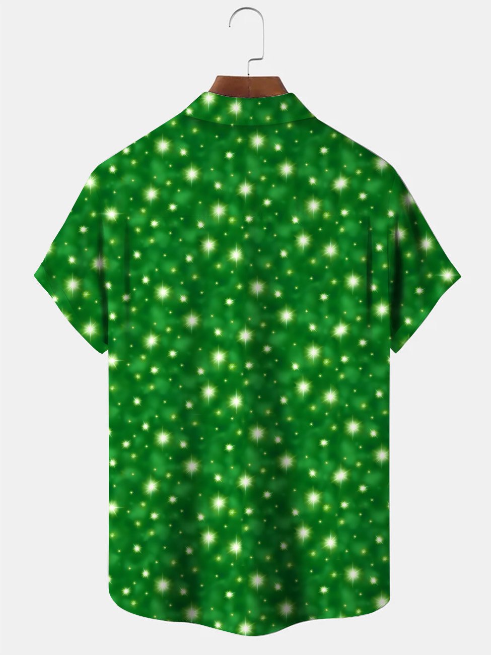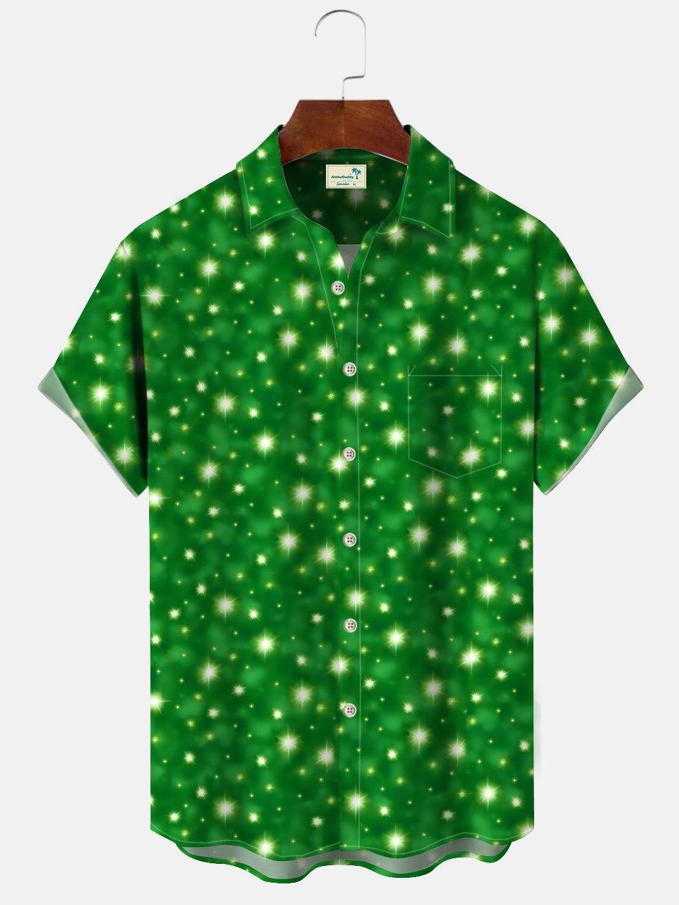 Alohadaddy Christmas Star Button Pocket Casual Short Sleeve Shirt