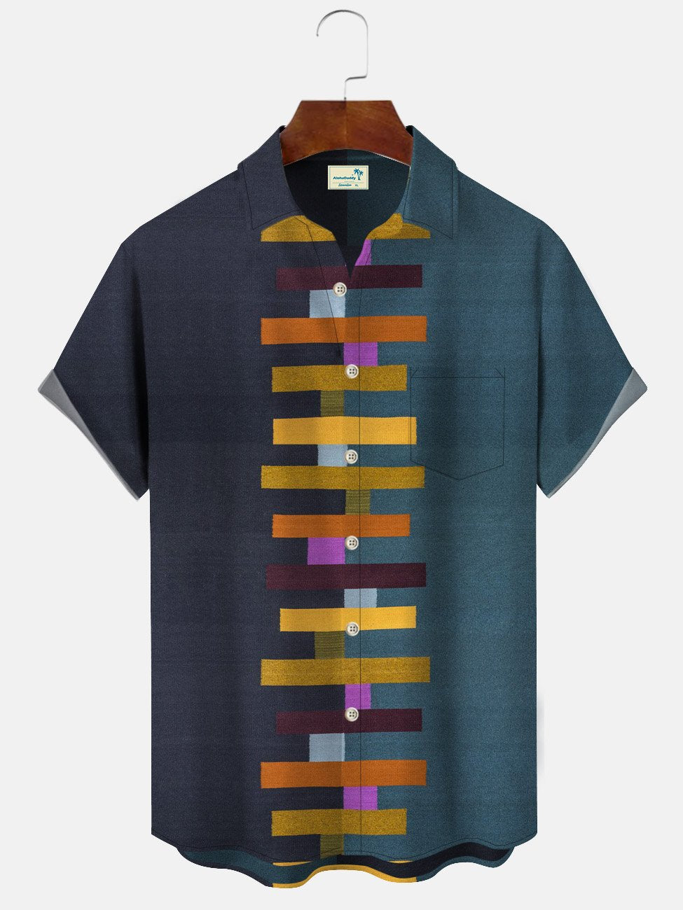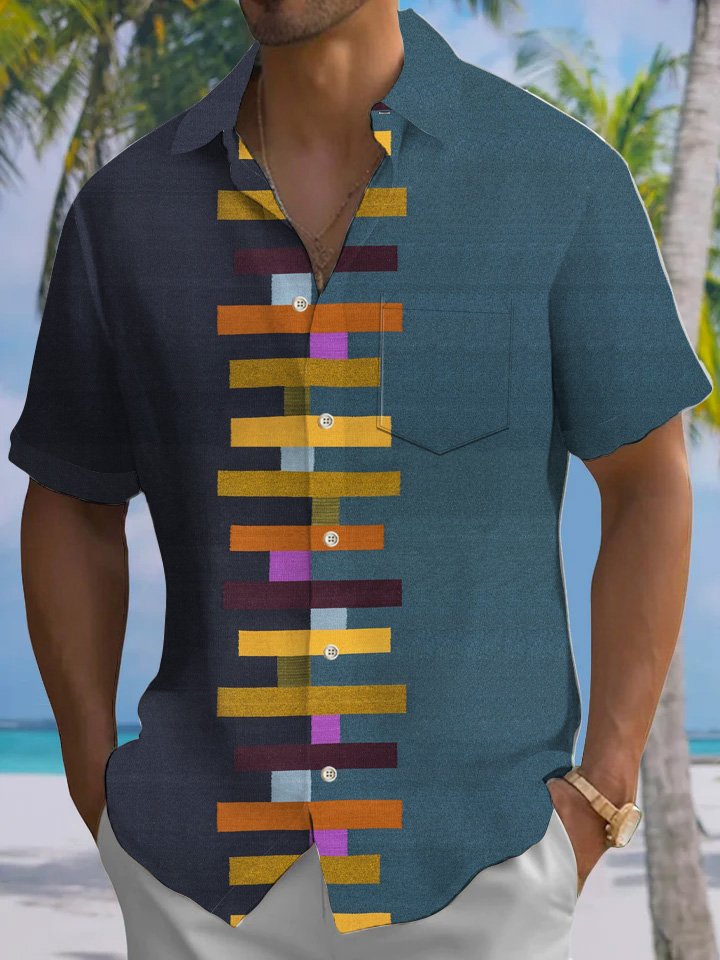 Alohadaddy Geometric Pattern Button Pocket Casual Short Sleeve Shirt