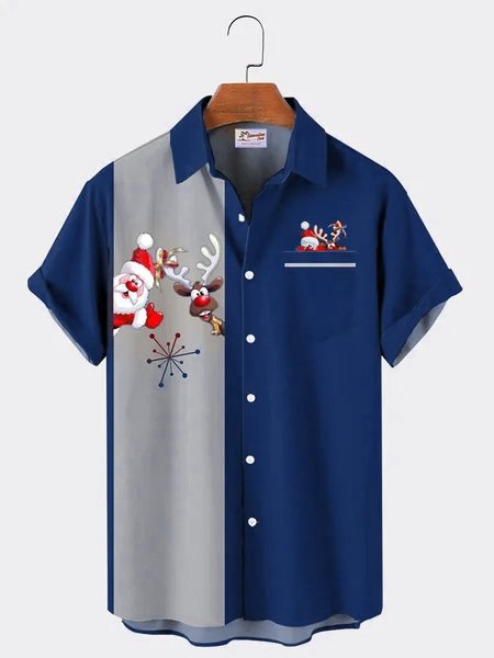 Men's Creative Christmas Stitching Striped Shirt With Pockets