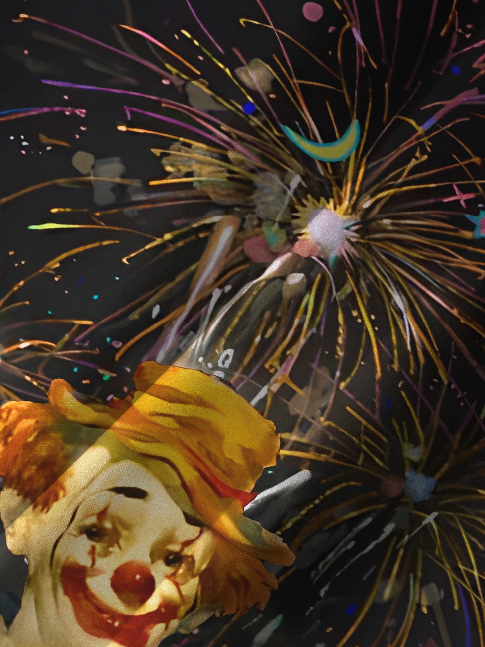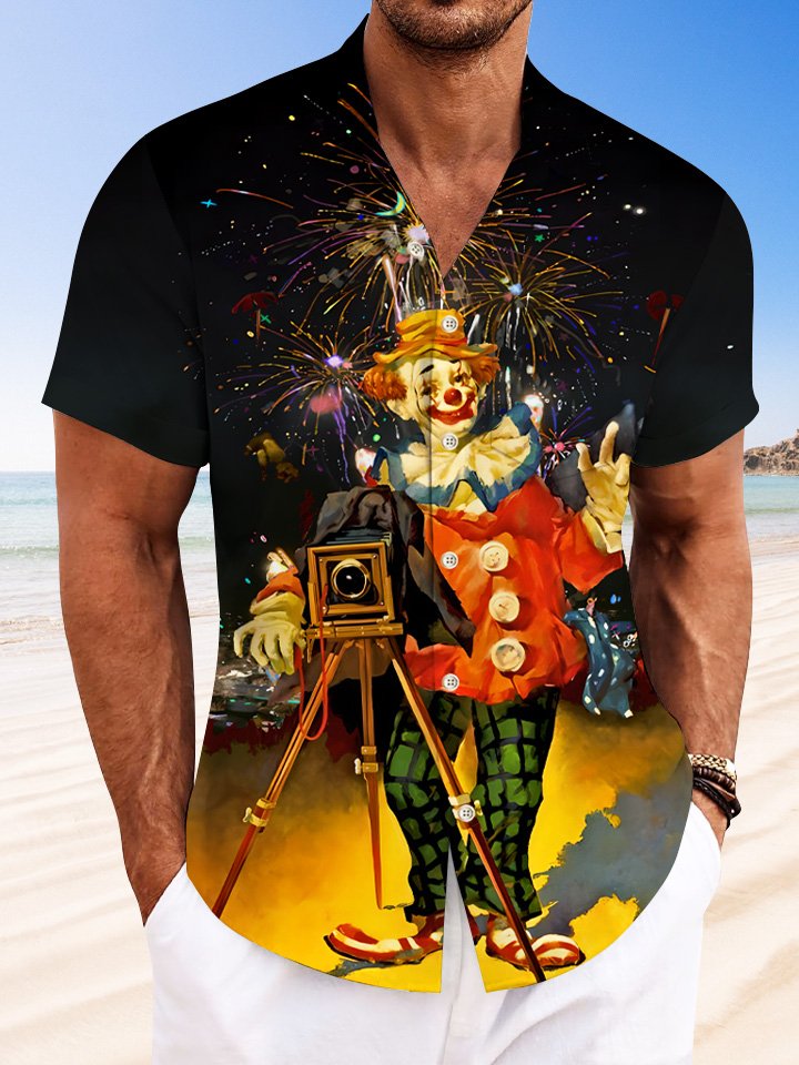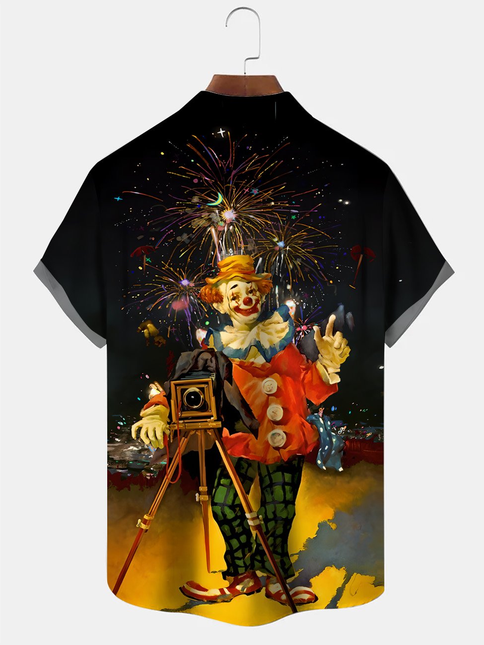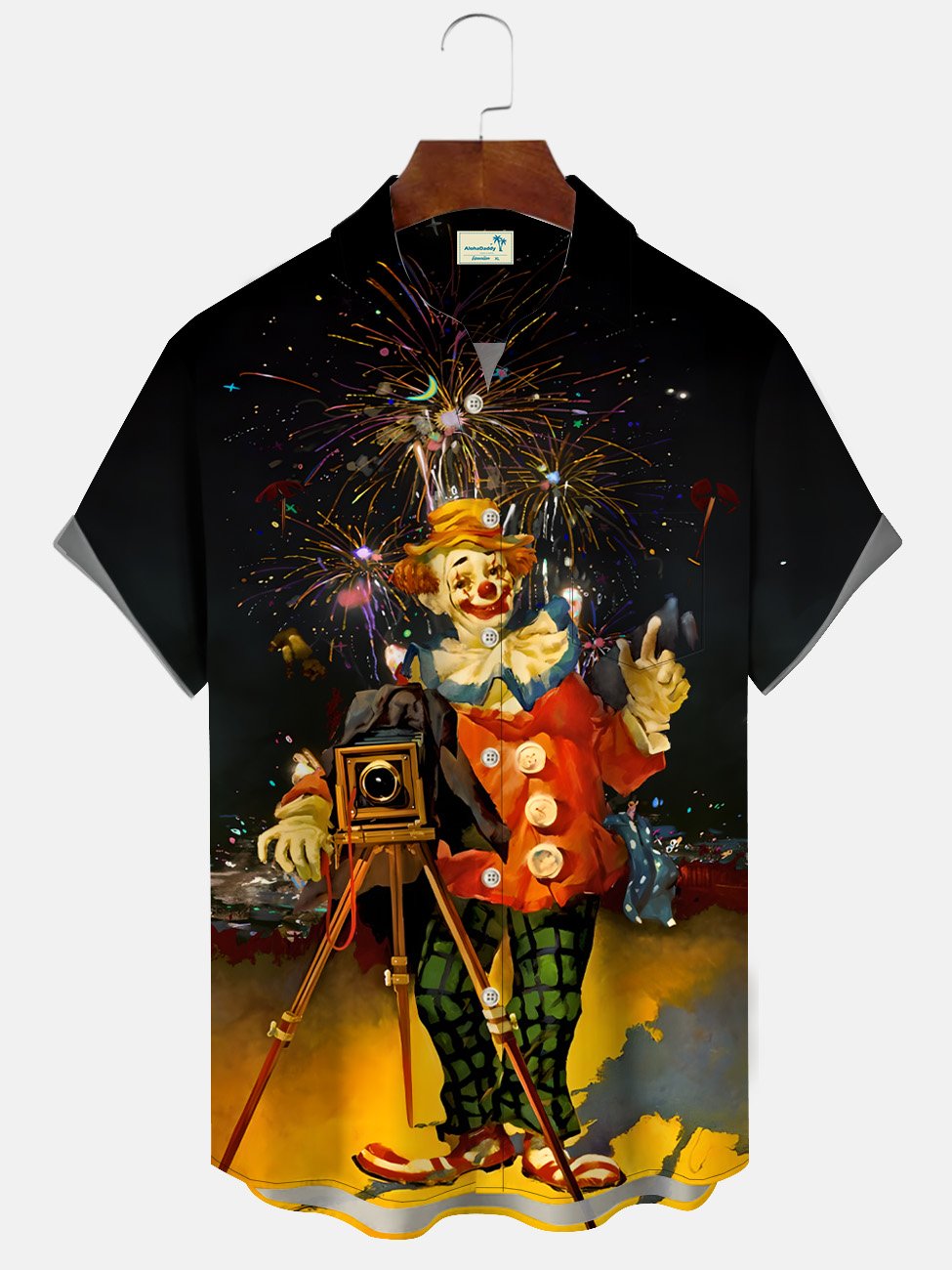 Alohadaddy Christmas Clown Fireworks Pocket Button Casual Short Sleeve Shirt